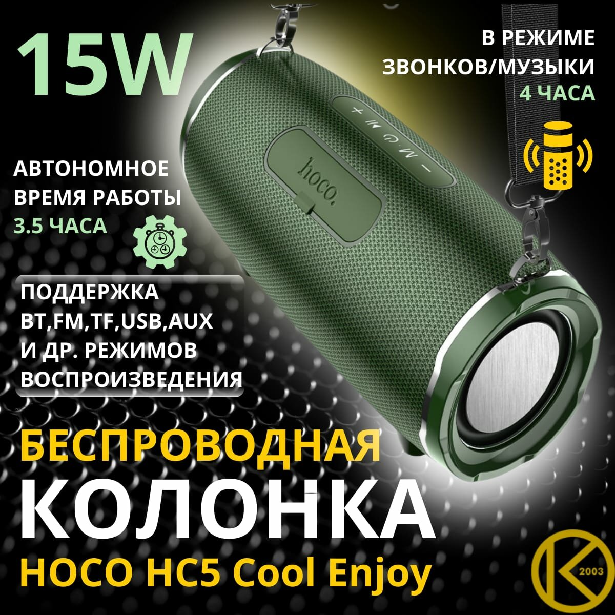 Колонка портативная HOCO, HC5, Cool Enjoy, Bluetooth, цвет: зеленый