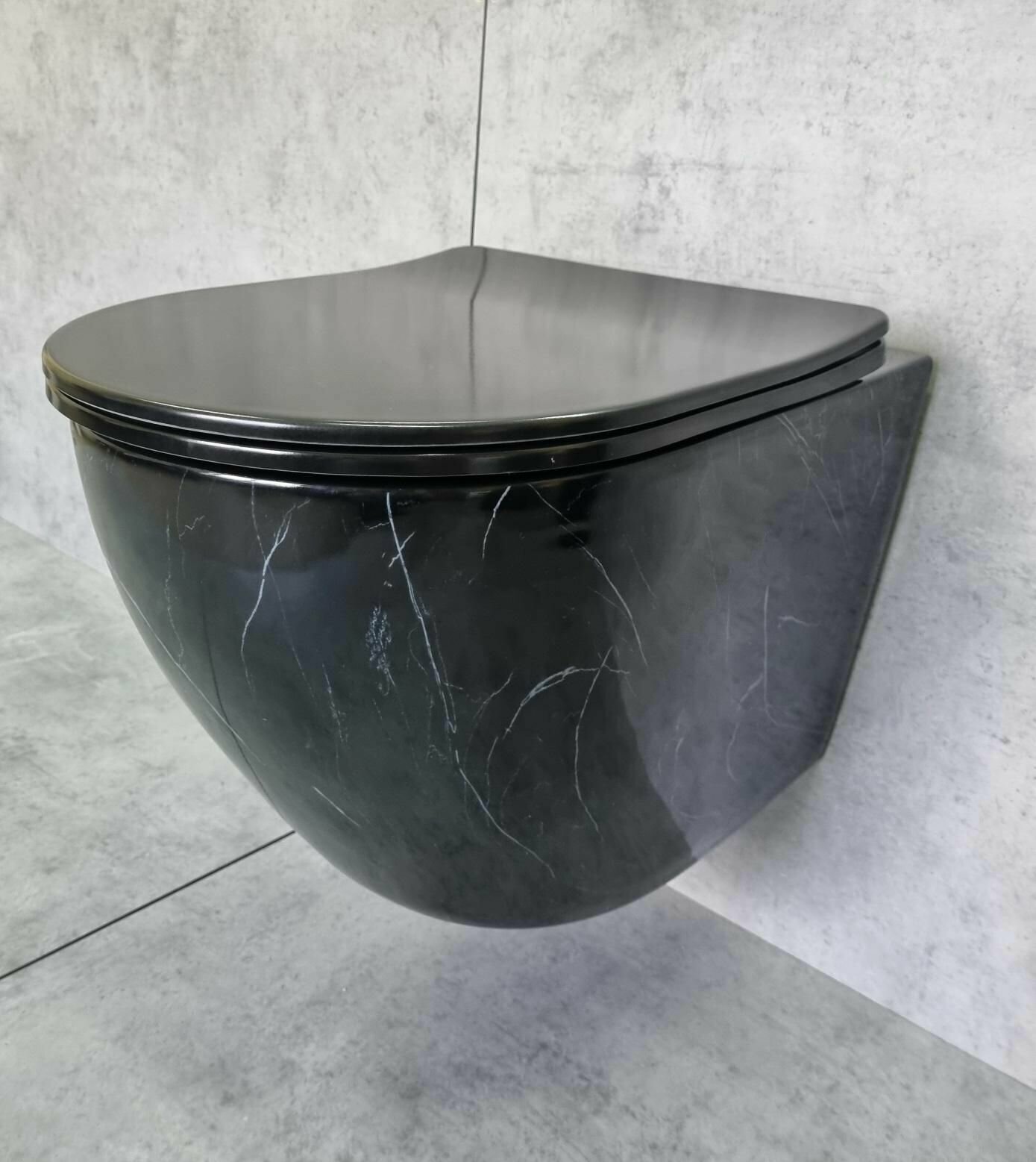 Унитаз подвесной CeramaLux 2212BM черный мрамор, безободковый, с крышкой микролифт