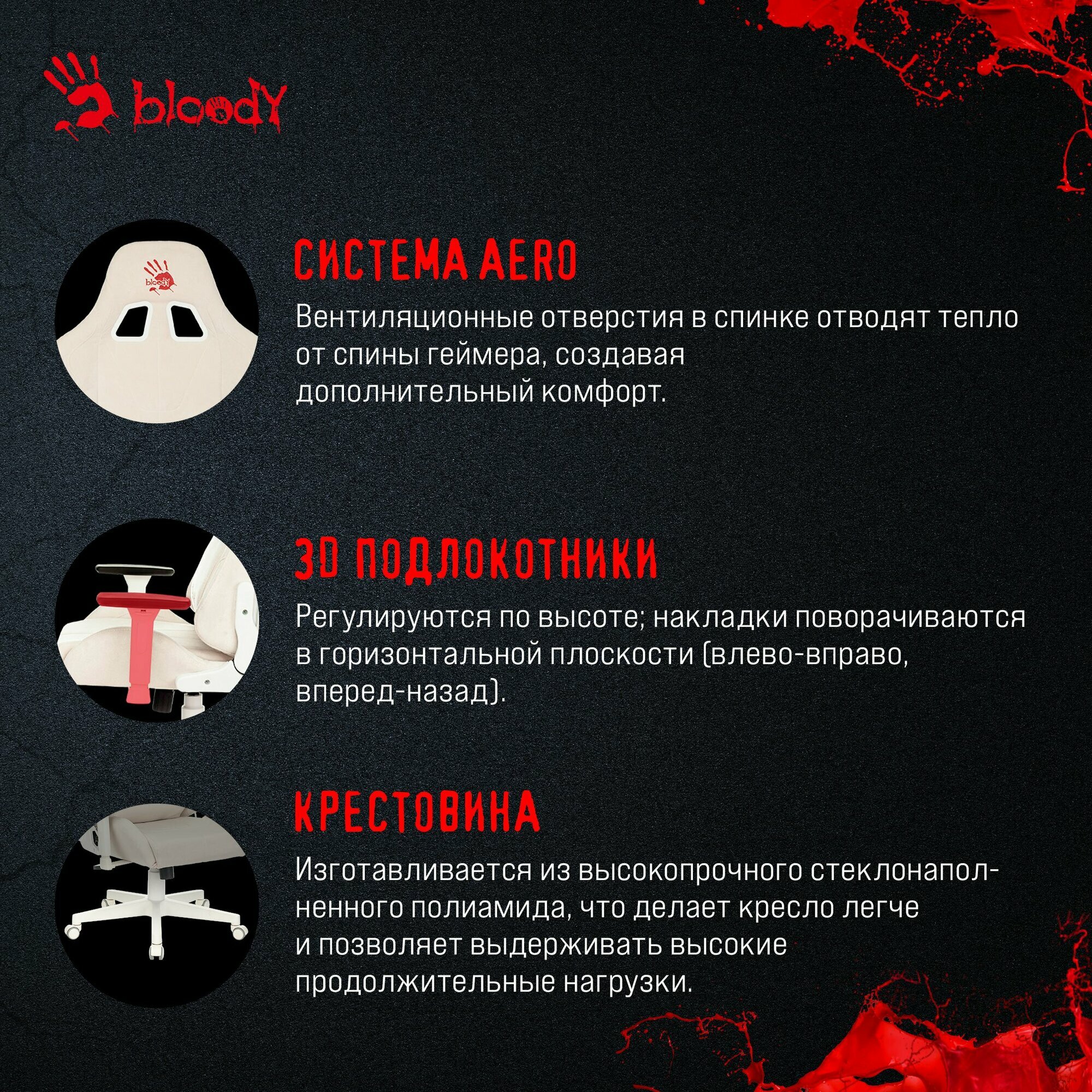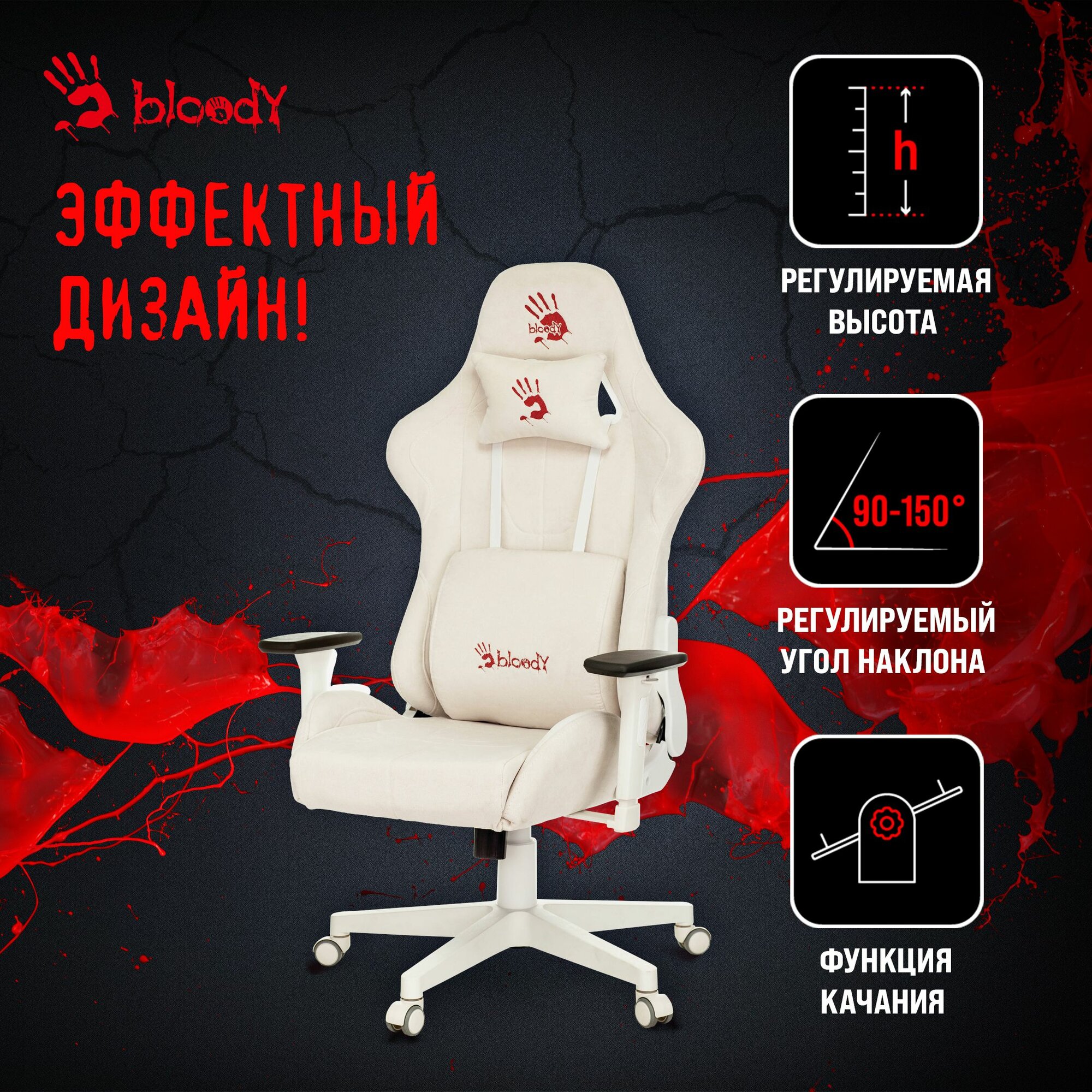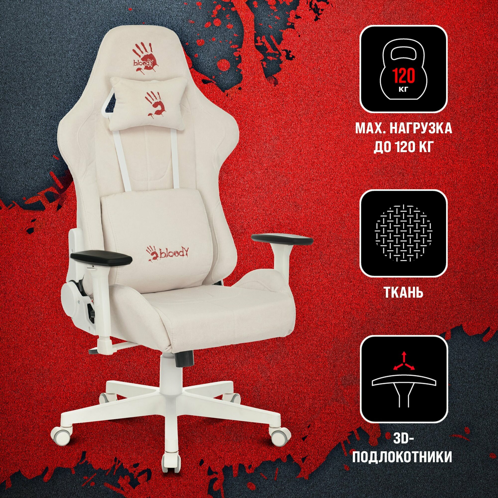 Кресло геймерское A4TECH Bloody GC-320 белый сиденье белый крестовина интересное: