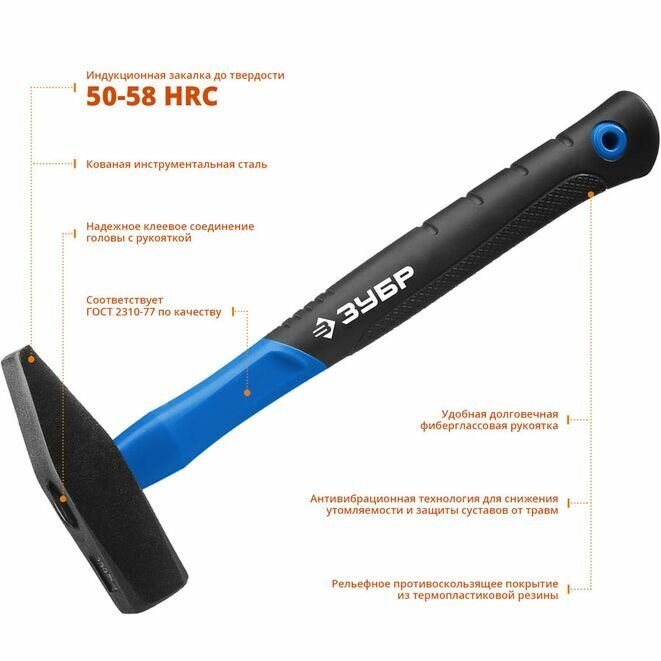 Молоток слесарный с фиберглассовой рукояткой ЗУБР 400 г, Профессионал
