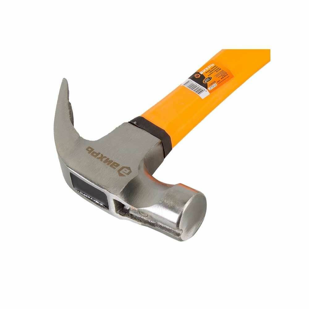 Молоток-гвоздодер 450г, фибергласовая двухкомпонентная рукоятка с магнитом Вихрь , Вихрь, вихрь 73688 (1 шт.)