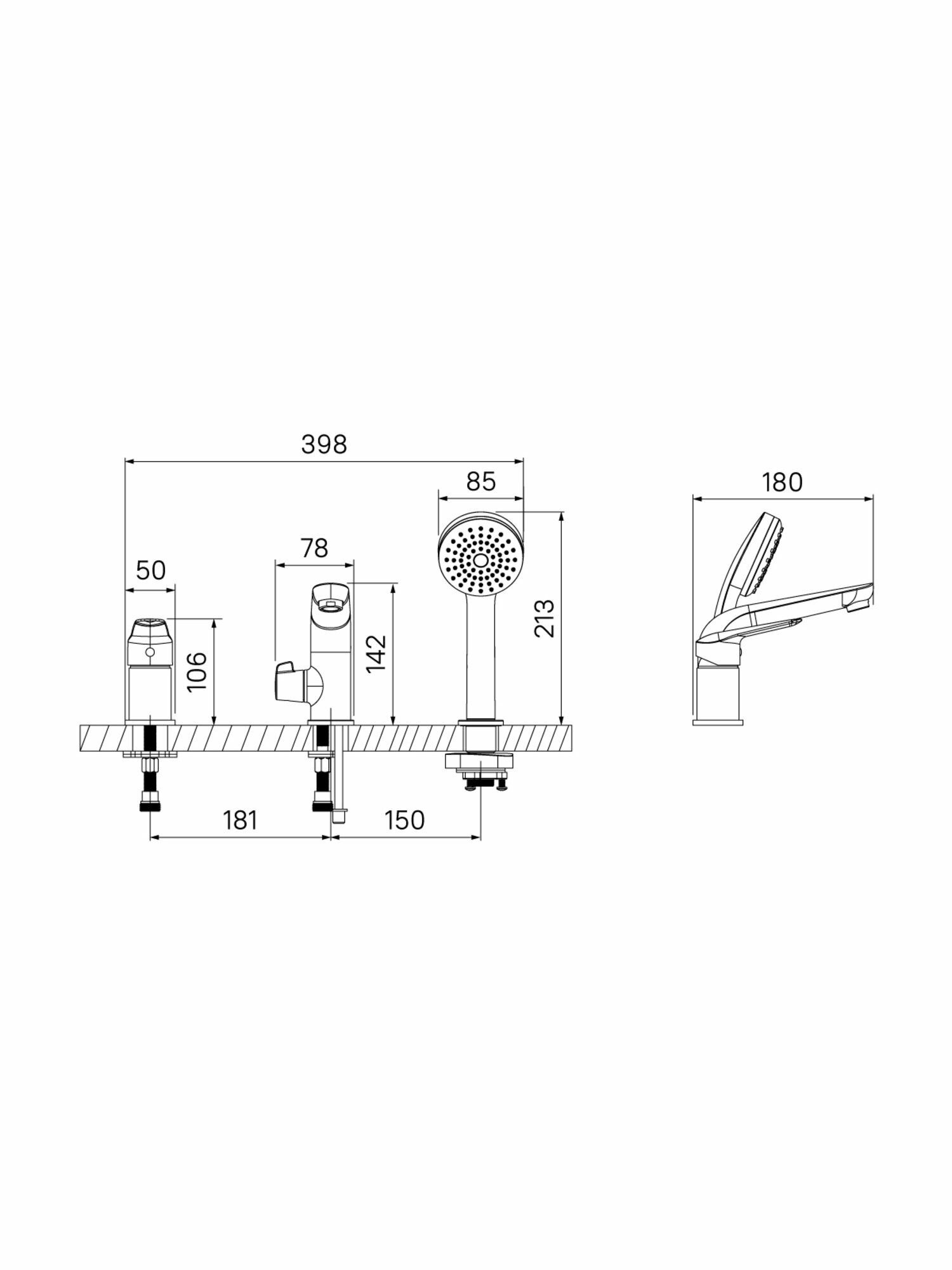 Смеситель на борт ванны на 3 отверстия с керамическим дивертором Torr TORSB30i07 IDDIS