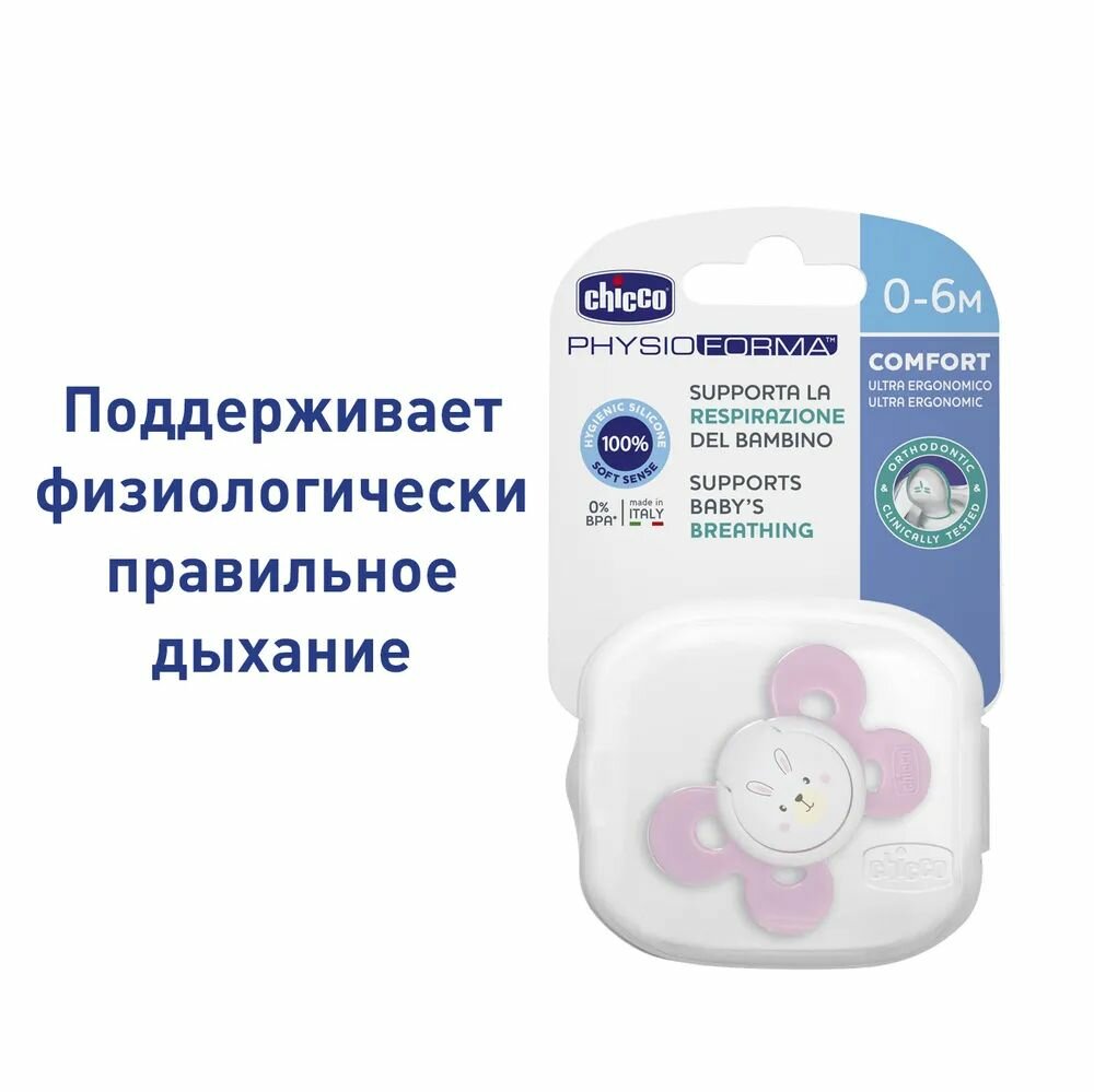 Chicco пустышка Physio Comfort 0-6 мес, силикон,"Белочка"