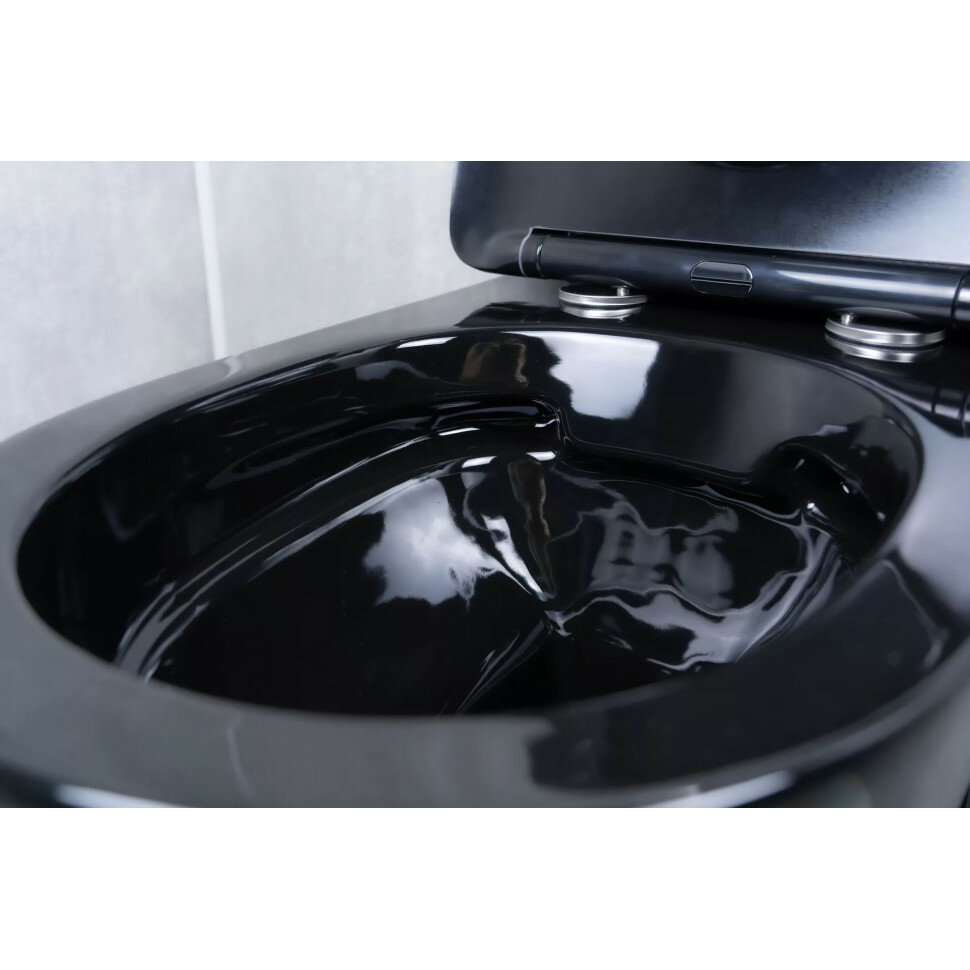 Безободковый подвесной унитаз черный глянцевый микролифт дюропласт Gid Tr2198-18