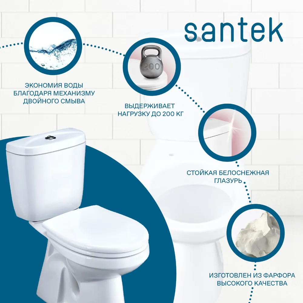 Унитаз-компакт SANTEK Анимо, 1.WH30.2.133, 2 режима интересное: