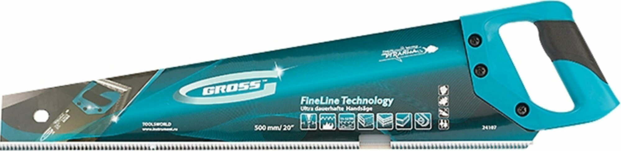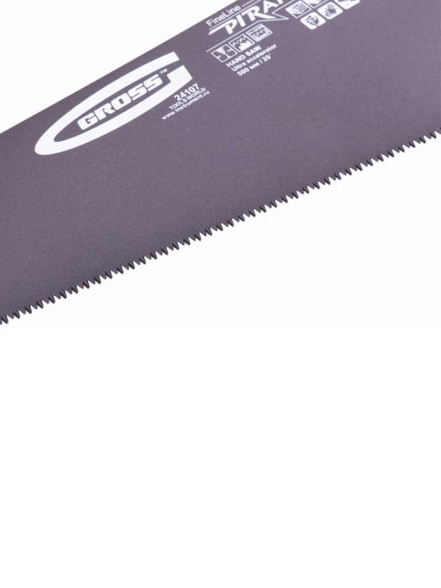 GROSS Ножовка по дереву "Piranha", 500 мм, 11-12 TPI, зуб-3D, каленый зуб, тефлоновое покрытие полотна, двухкомпонентная рукоятка Gross, ( 24107 )