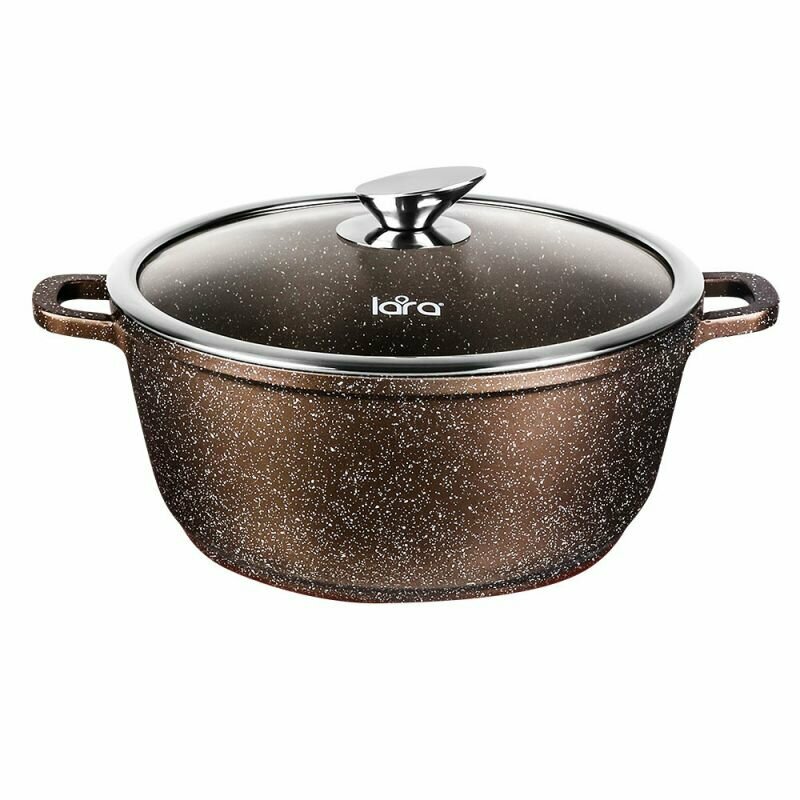 Кастрюля с крышкой LARA LR02-206 CHOCO мрамор, d28 см, 6.1л, для всех типов плит