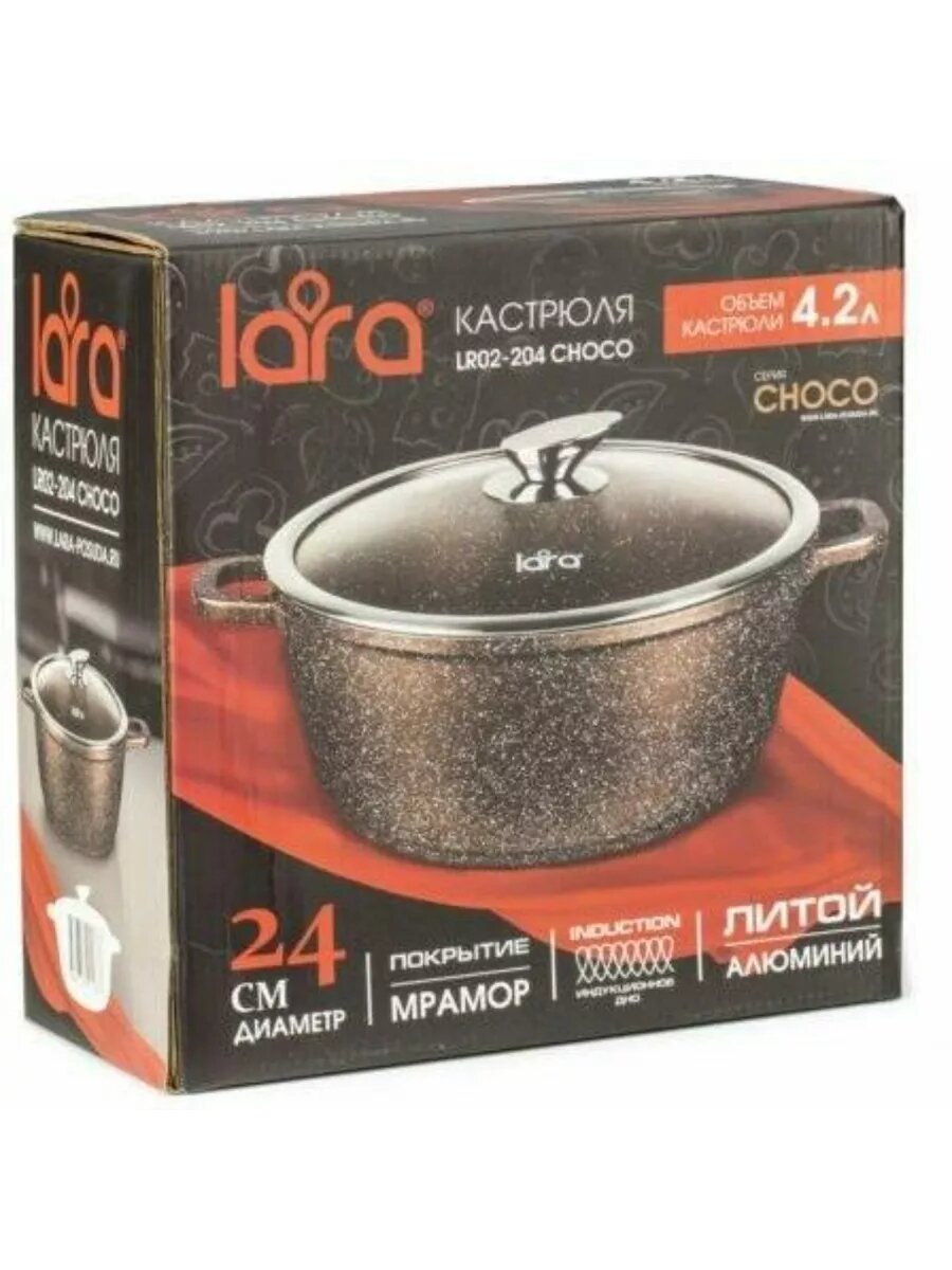 Кастрюля алюминиевая 6.1л LARA LR02-206 CHOCO мрамор, для всех видов плит, крышка