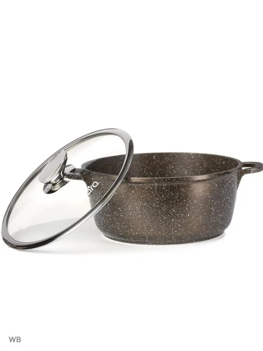 Кастрюля алюминиевая 6.1л LARA LR02-206 CHOCO мрамор, для всех видов плит, крышка