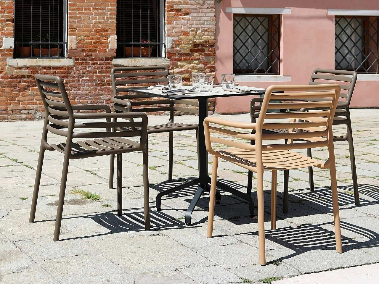 Комплект из 4-х садовых обеденных стульев NARDI Doga Bistrot, усиленный пластик, цвет грушевый