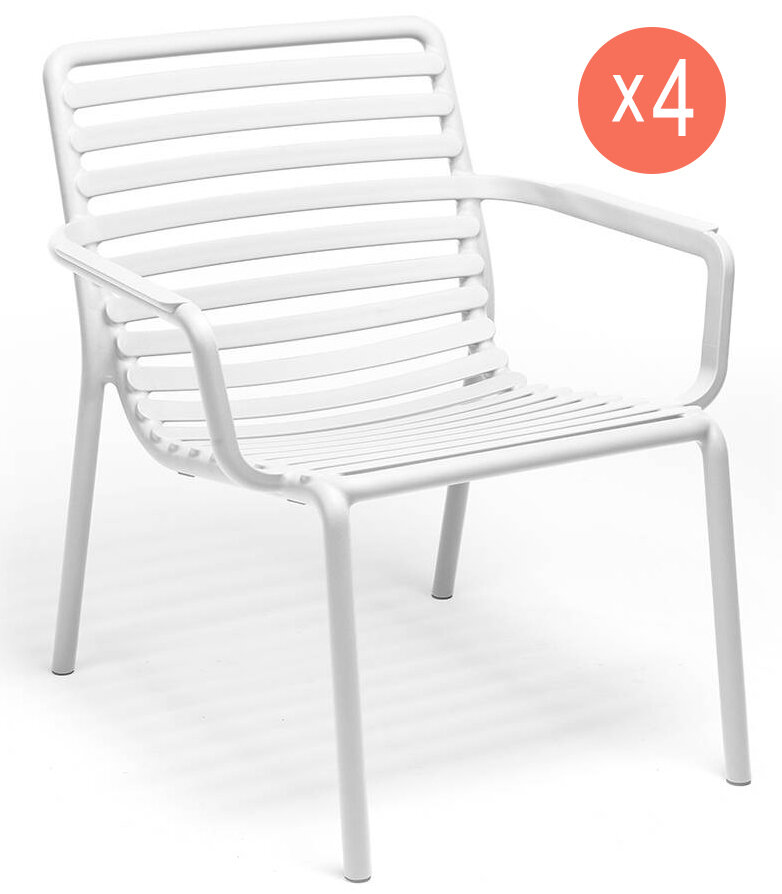 Купить Комплект из 4-х садовых обеденных кресел для дачи Nardi Doga Relax, из стеклопластика, цвет белый