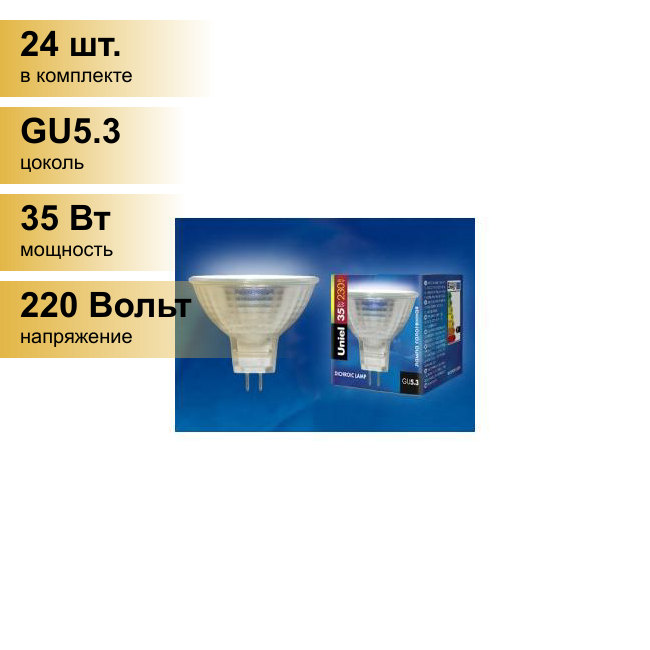 Купить (24 шт.) Галогенная лампочка Uniel MR16 JCDR GU5.3 220V 35W JCDR-35/GU5.3