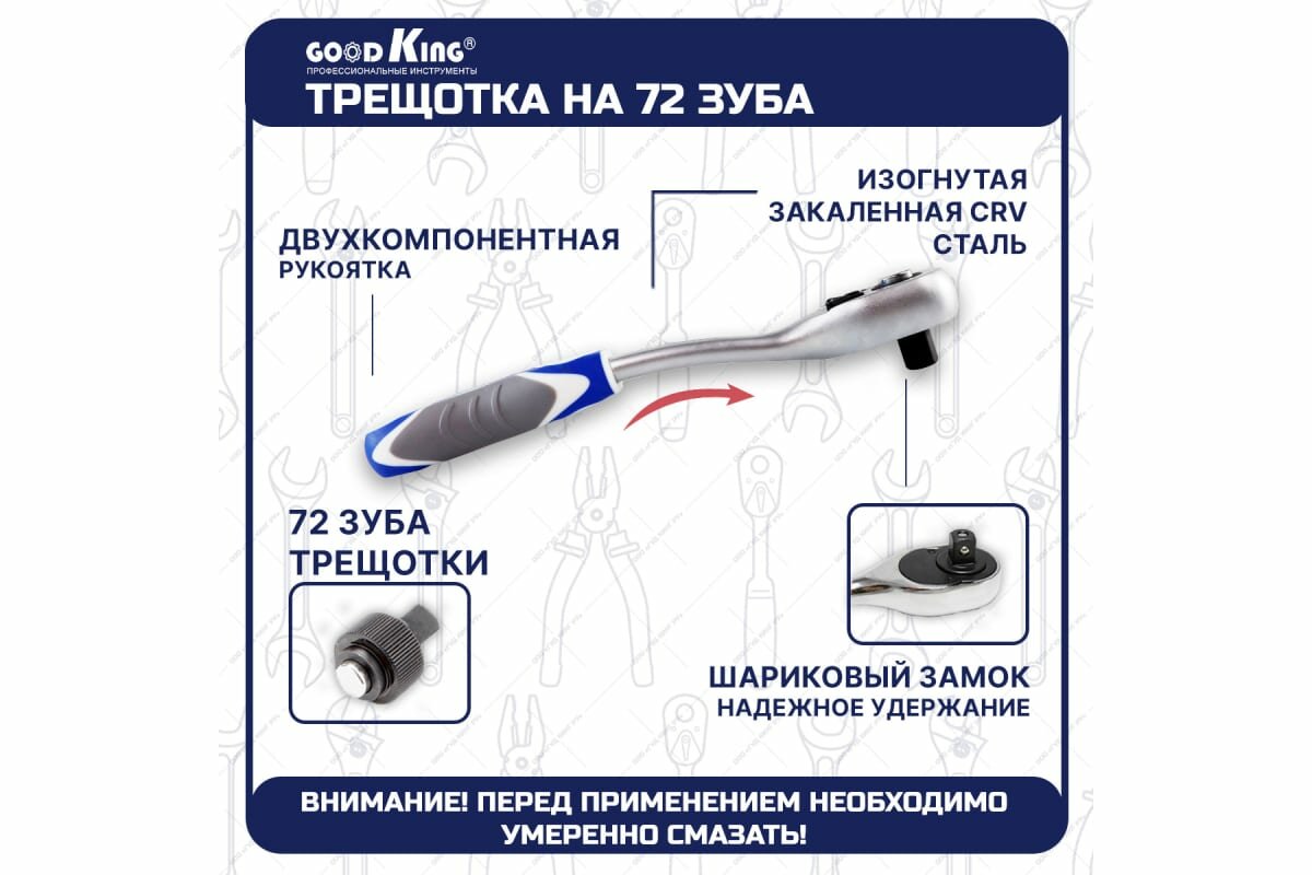 Goodking Набор инструментов для автомобиля 61 предмет 1/4 1/2 трещотка 72 зуба B-10061 .
