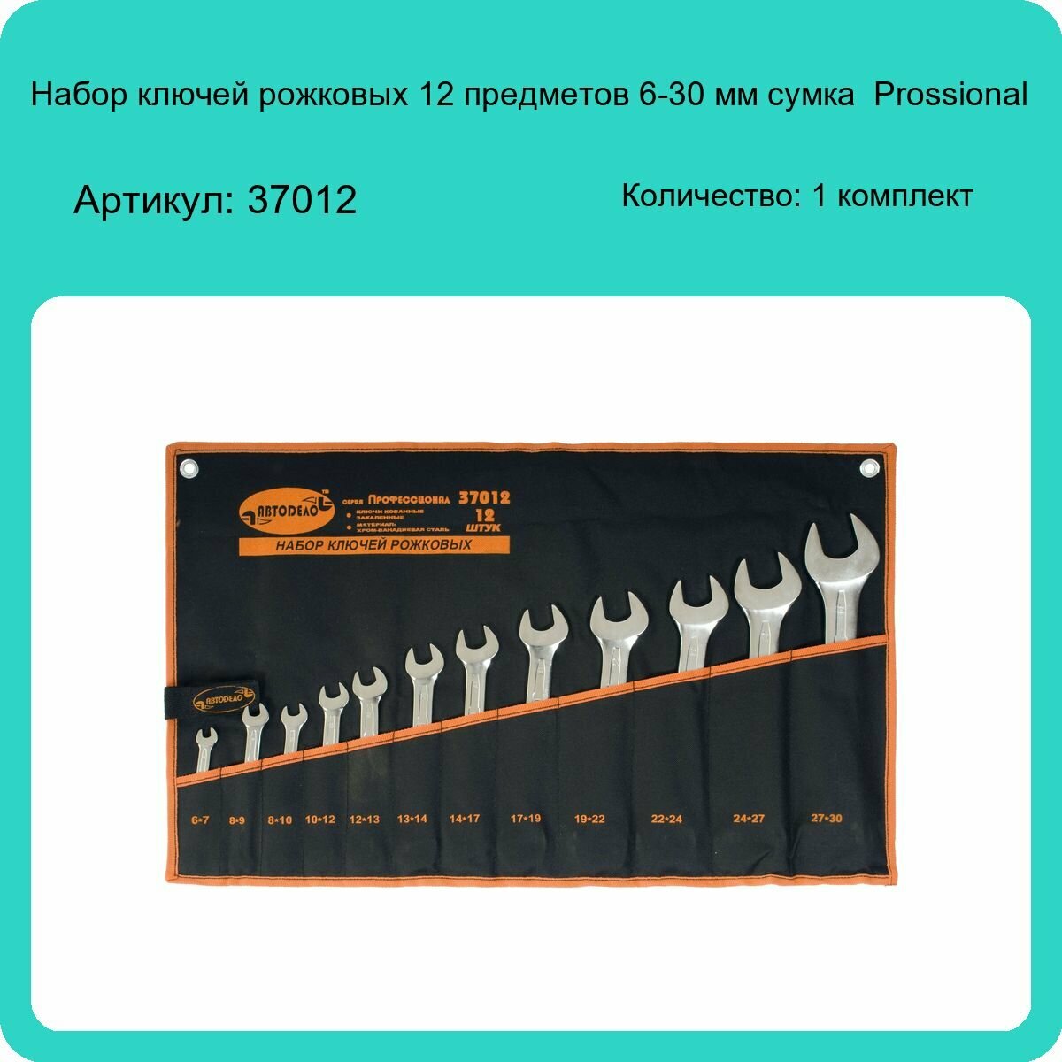Автодело 37012 Набор ключей рожковых 12 пр. 6-30 мм сумка АвтоДело Prossional