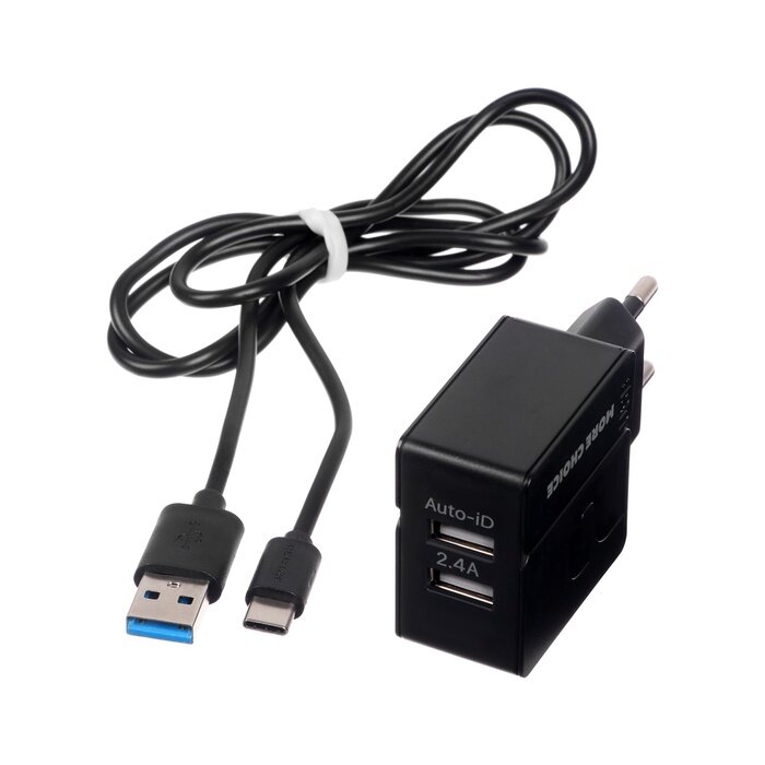 Сетевое зарядное устройство More choice NC46a, 2 USB, 2.4 А, кабель Type-C, черный