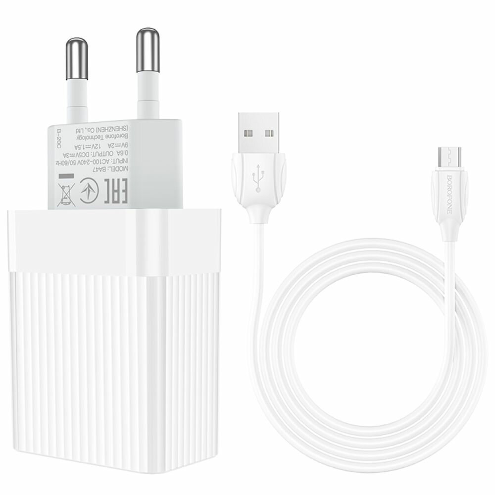 Сетевое зарядное устройство Borofone BA47A Mighty speed + кабель microUSB, 18 Вт, Global, white