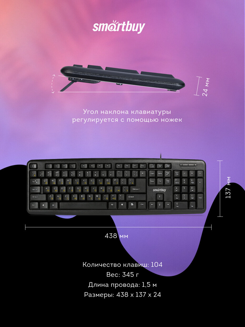 Клавиатура Smartbuy ONE 112U-K проводная черный (sbk-112u-k) .