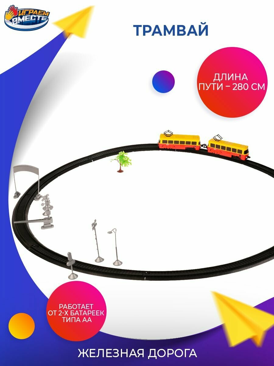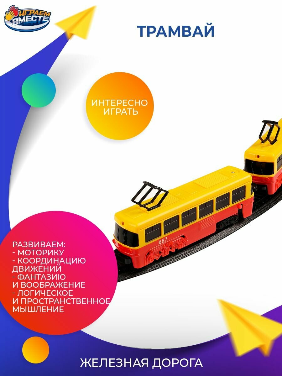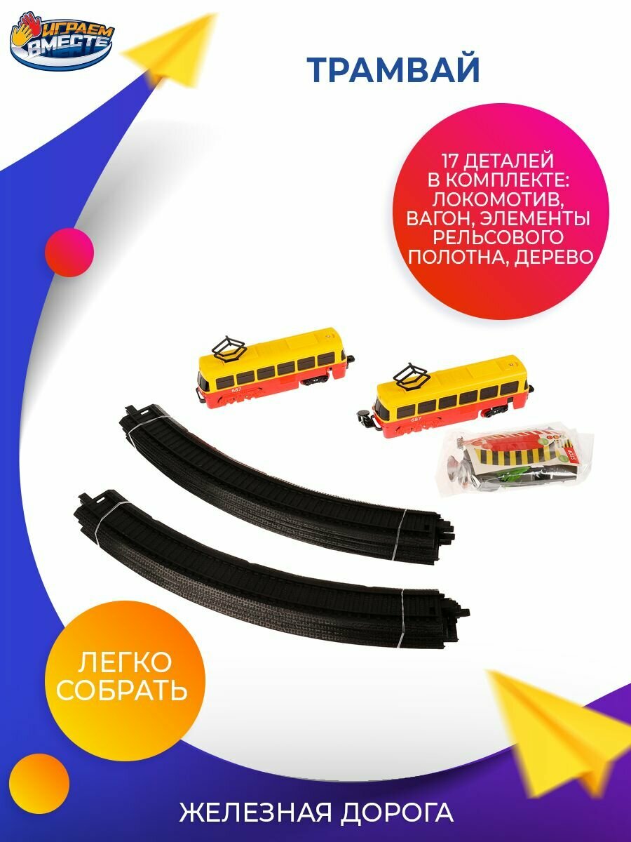 Купить Железная дорога Играем Вместе B2011687-r Трамвай со светом и звуком 17 деталей .