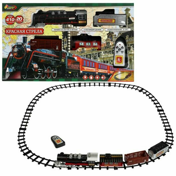 Железная дорога "красная стрела" на ИК-управлении Играем Вместе B2048808-R свет/звук, длина пути 410см, 50,7*30,4*9,3см