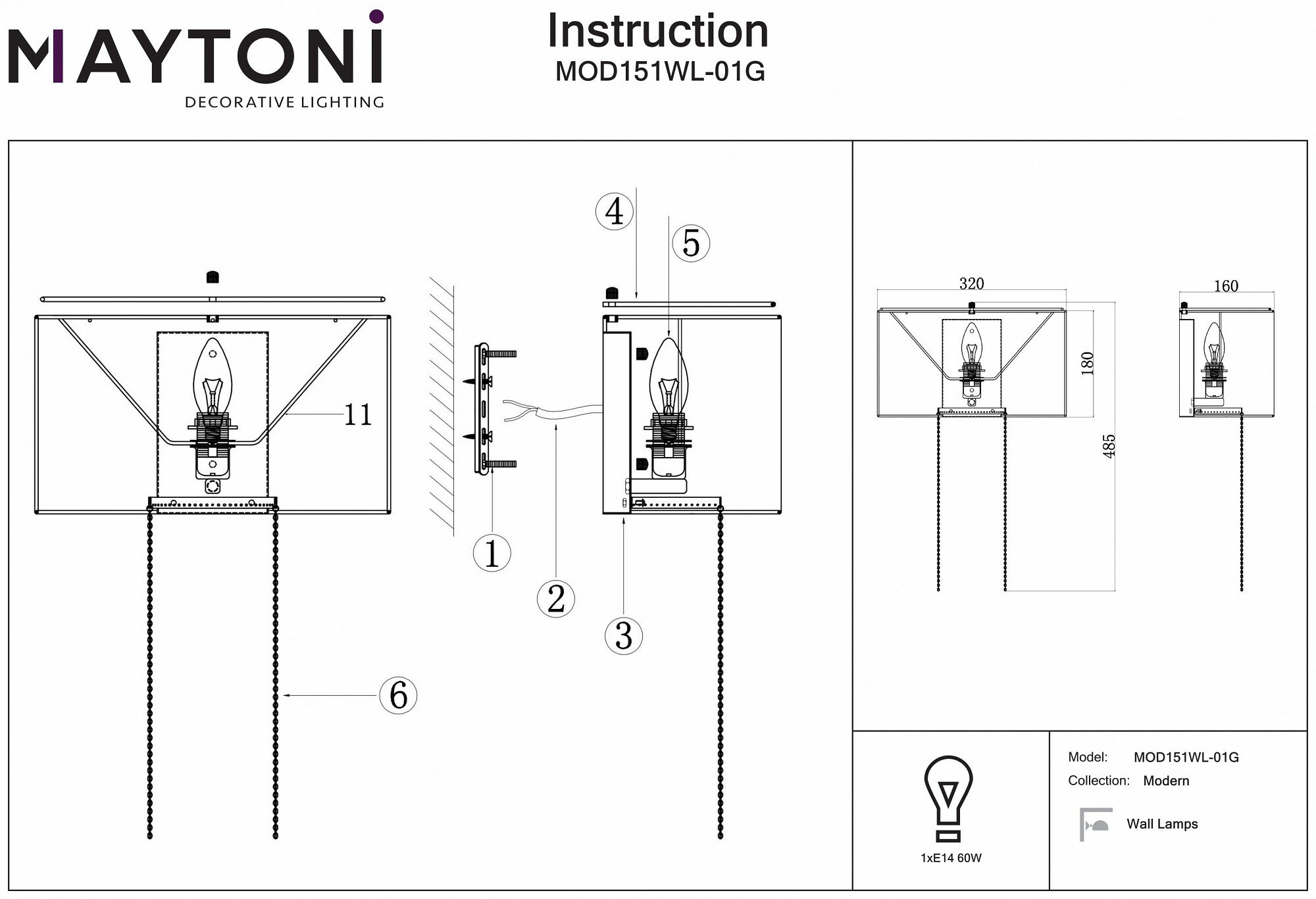 Настенный светильник (бра) Maytoni MOD411WL-01G