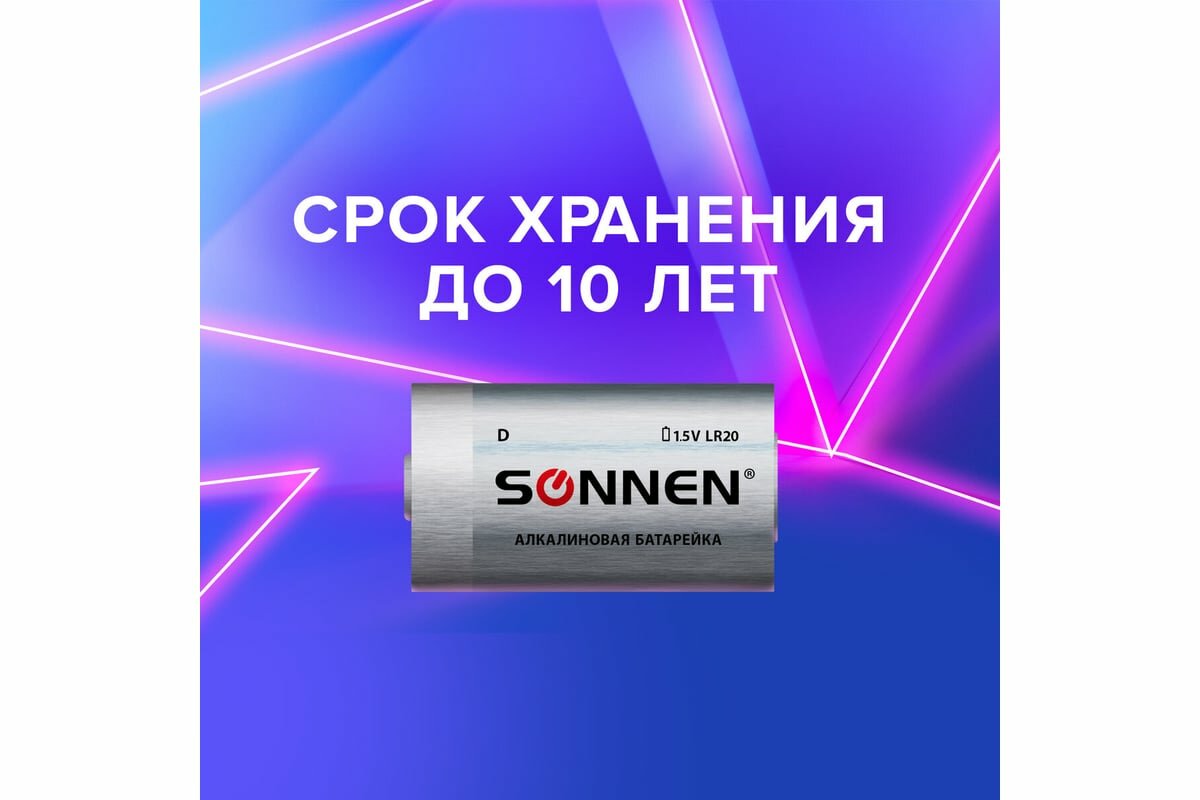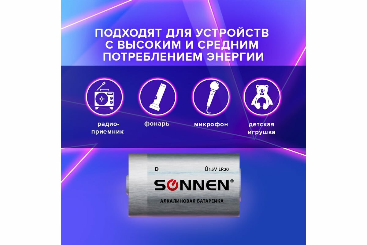 Батарейки SONNEN, LR20 комплект 2 шт.
