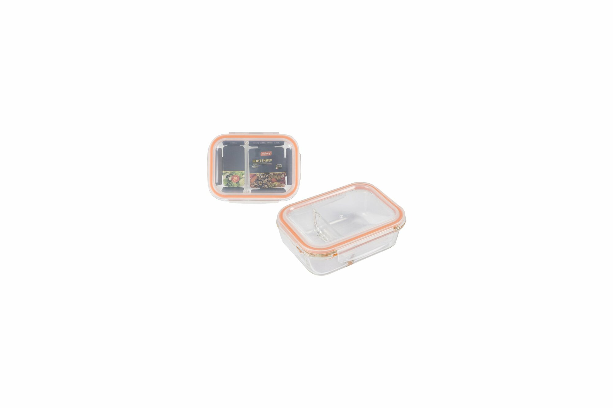 Контейнер Mallony Gusto, 600 мл, 2 секции из жаропрочного стекла с крышкой с защёлками 008676 .