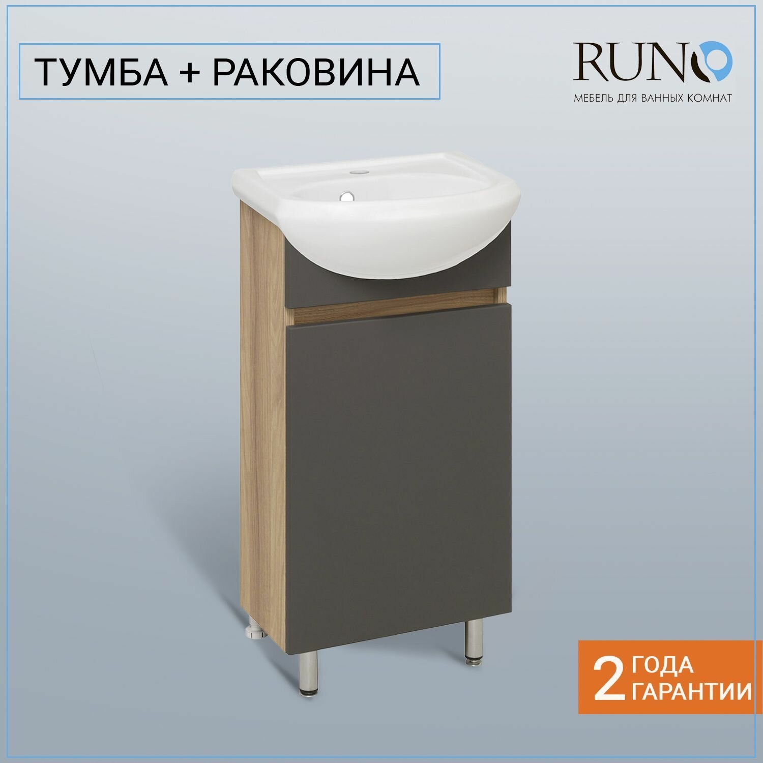Тумба напольная RUNO Лада 40 графит с умывальником Mango 40