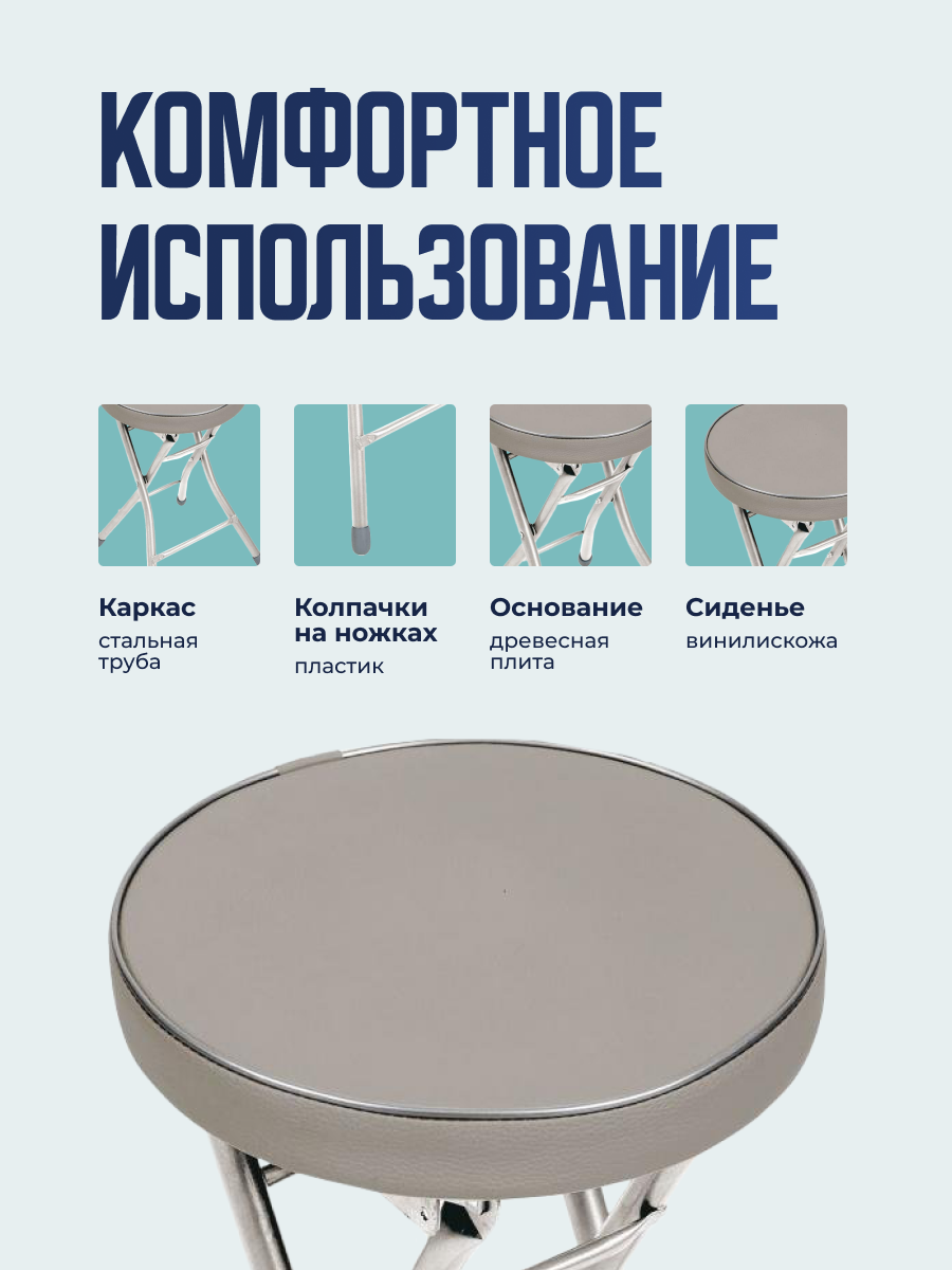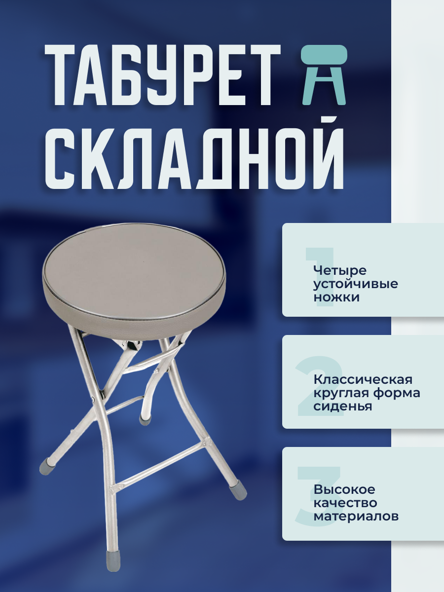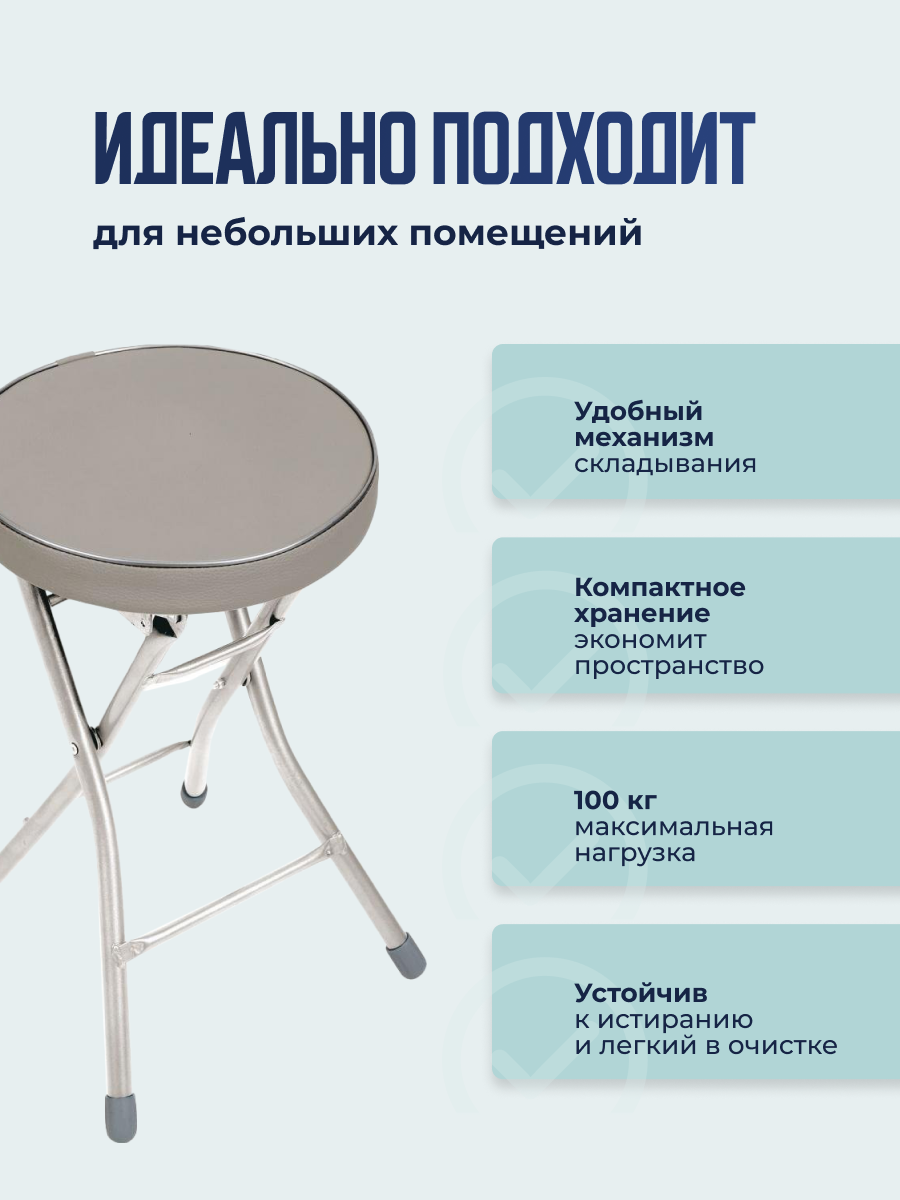 Табурет складной Nika, мягкое круглое сиденье, d 32 см, серый