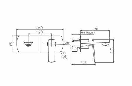 Смеситель для ванны Haiba Смеситель для ванны HB80548-7, встраиваемый, латунь, черный/хром