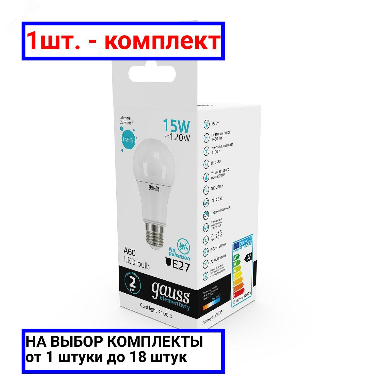 Лампа светодиодная Gauss Elementary 15Вт цок.:E27 груша 220B 4100K св.свеч.бел.нейт. A60 (упак.:1шт) (23225)