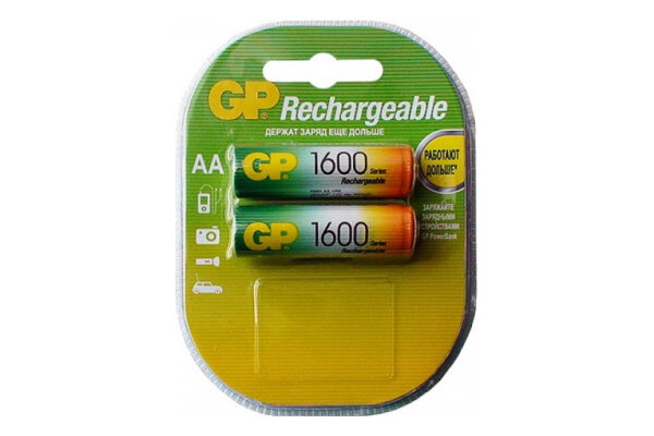 Аккумуляторы GP Rechargeable 1600 mAh NiMH AA 1.2V (2 шт)