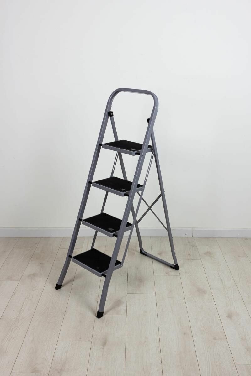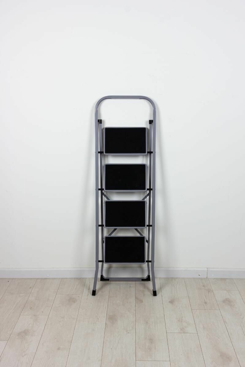 Стремянка стальная с антискользящими ступенями, 4 ступени, цвет- серебро