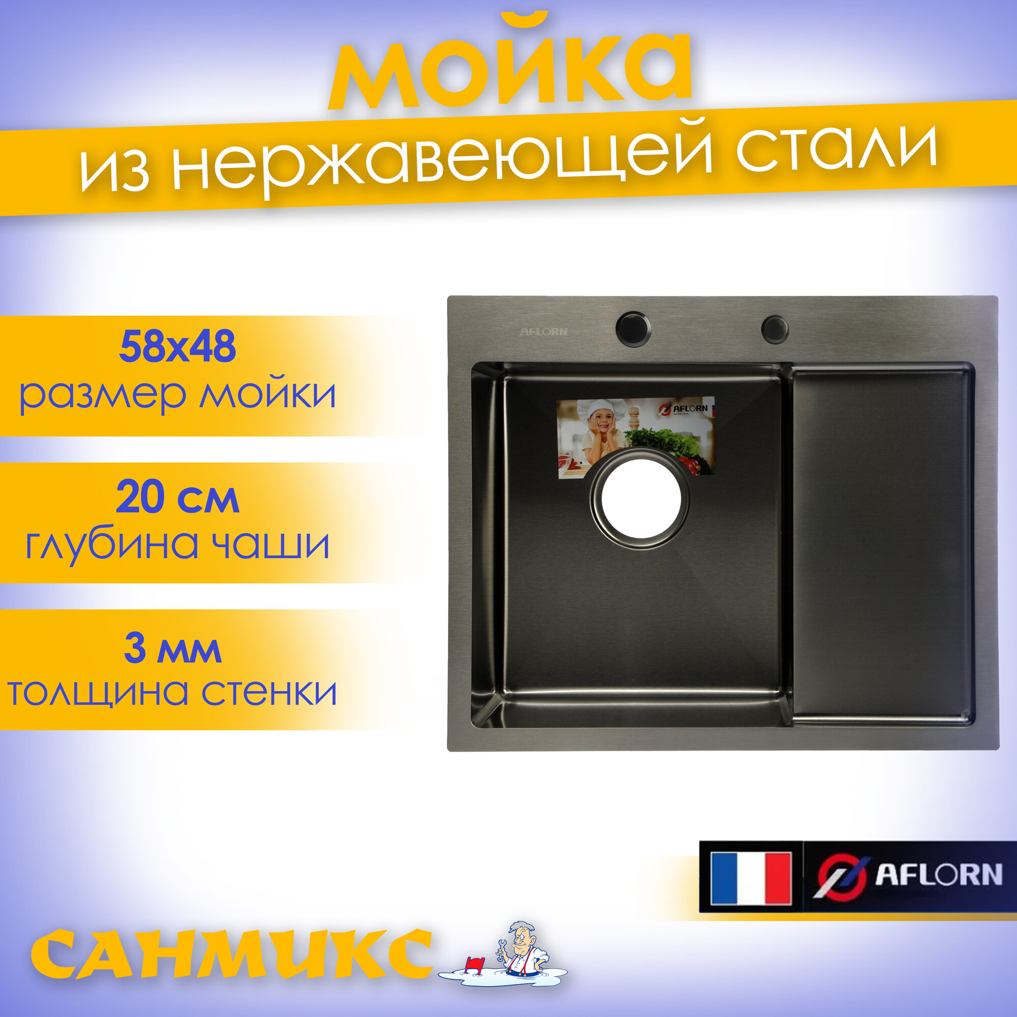 Ниже Вы можете прочитать отзывы на Мойка врезная нержавеющая сталь 58х48, толщ 3,0 мм, графит, левая, премиум AF95848F-L, ознакомится с подробными характеристиками, посмотреть интересные обзоры и фотографии на Мойка врезная нержавеющая сталь 58х48, толщ 3,0 мм, графит, левая, премиум AF95848F-L.