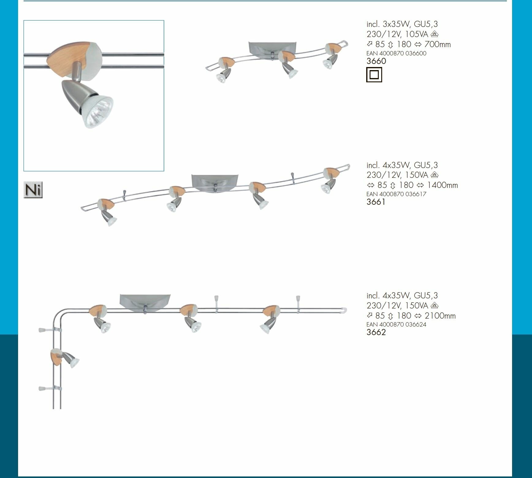 Купить Светильник потолочный трековый Paulmann L210см 35Вт GU5.3 230/12В Никель матовый/Дерево Набор 4 спота Трансформатор 150Va 3662.
