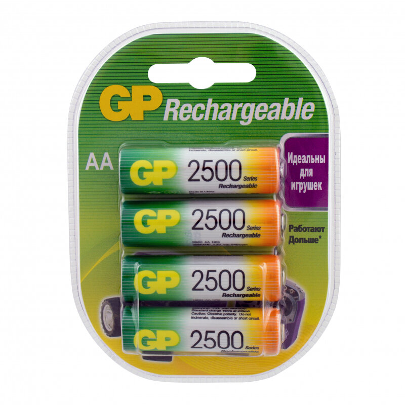 Аккумулятор Ni-Mh 2500 мА·ч 1.2 В GP Rechargeable 2500 series AA, в упаковке: 4 шт.