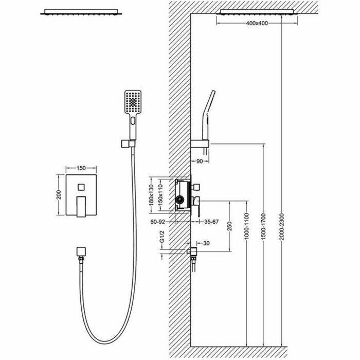 | Дополнительная информация | размер верхнего душа: 400 x 400 мм; диаметр керамического картриджа 35 мм |