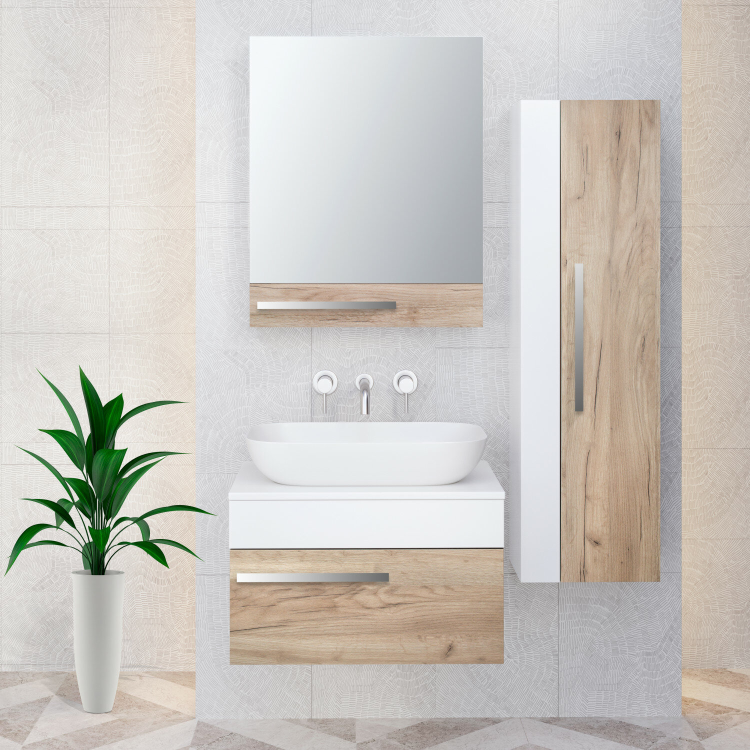 Тумба под раковину подвесная Тоскана 60, светлое дерево