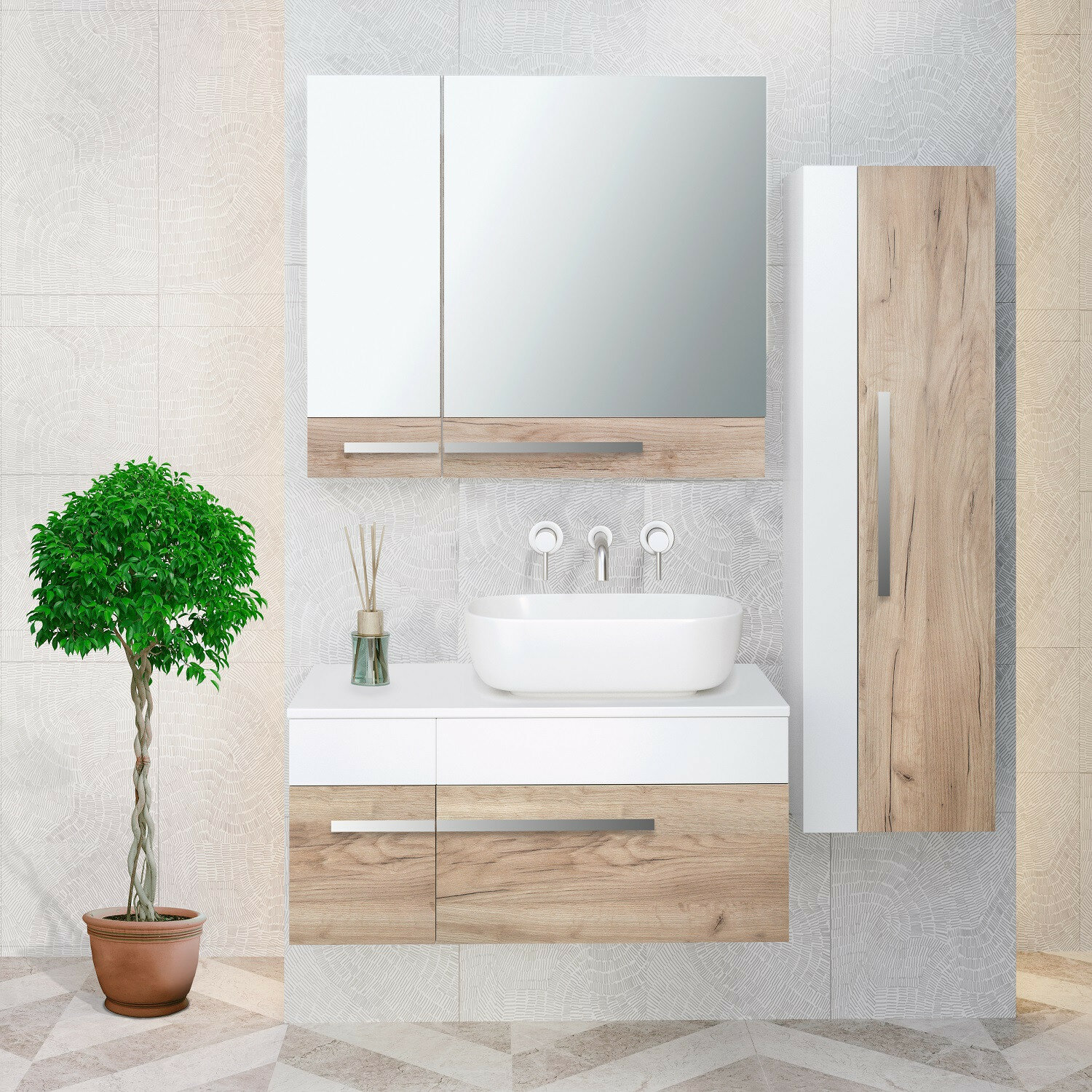 СохранитьТумба под раковину подвесная Runo вудлайн 85, крафтовый дуб интересное: