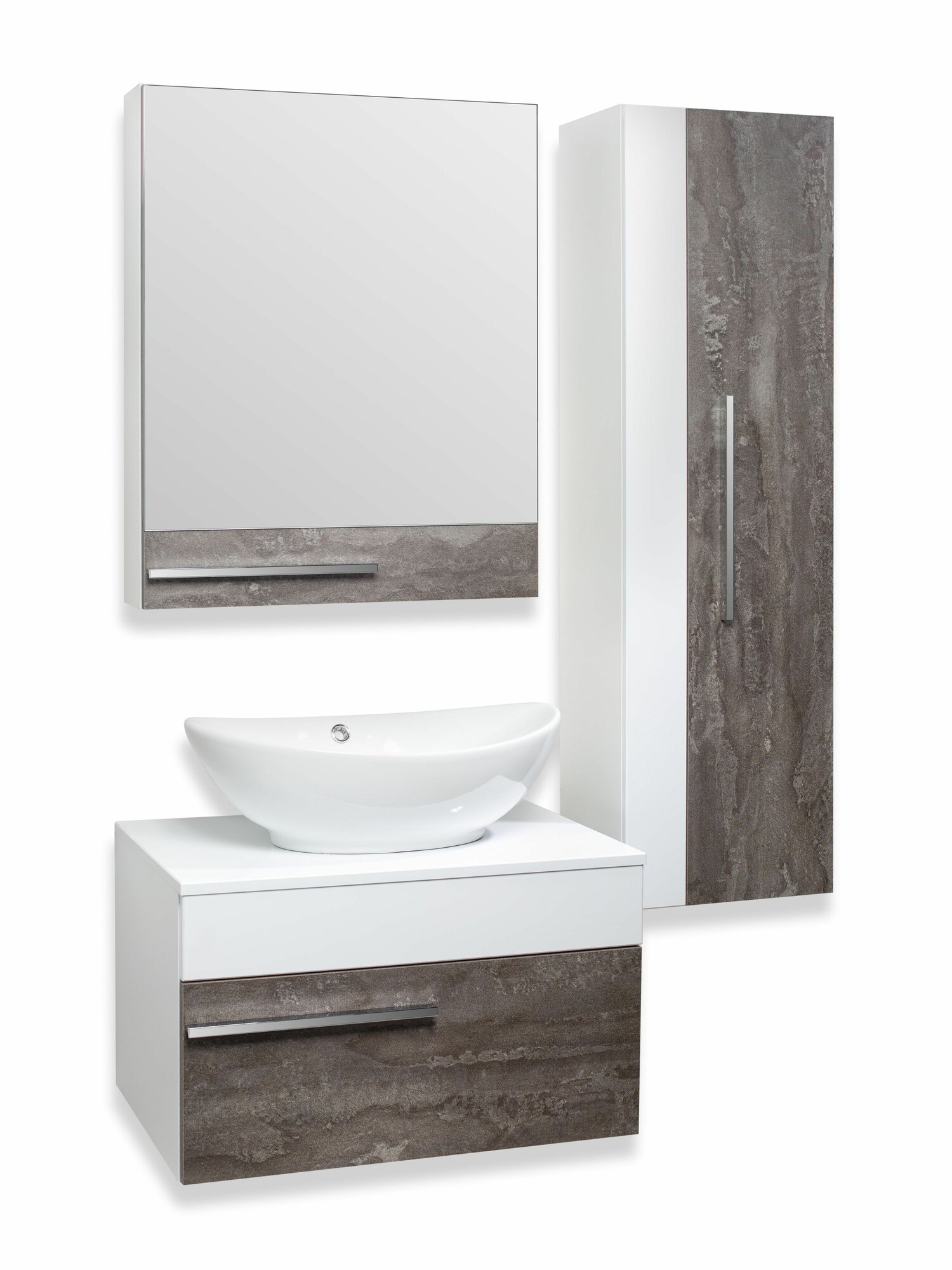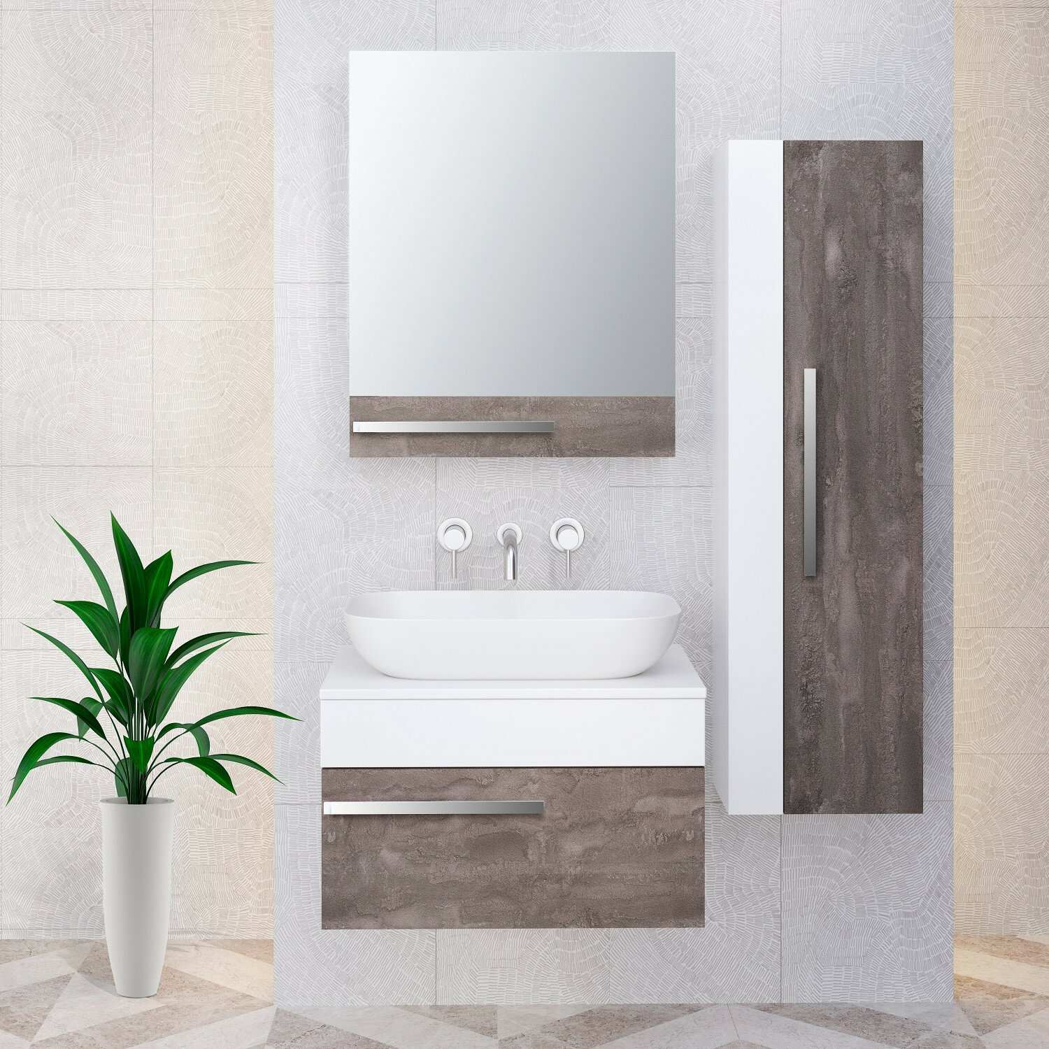 Тумба под раковину в ванную Runo Модена 75, подвесная, железный камень, под умывальник Оскар 75