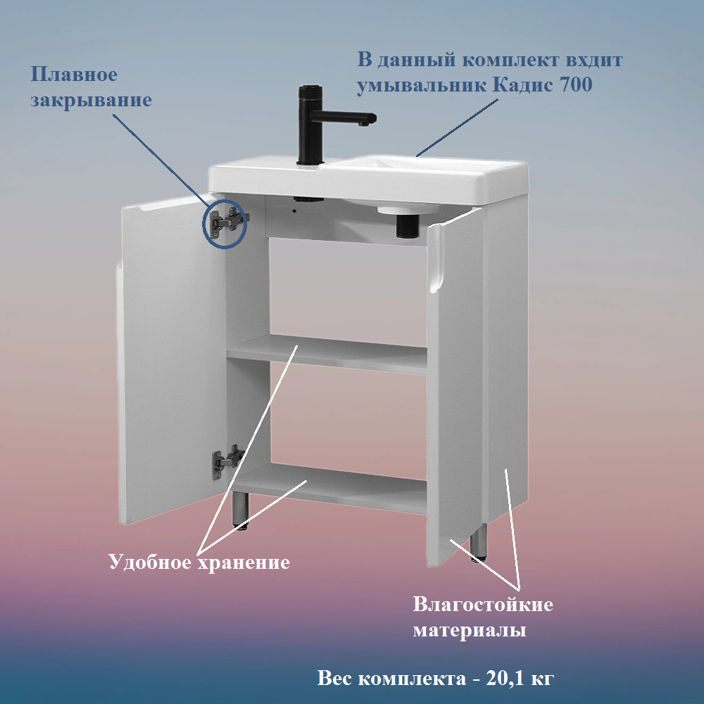 Комплект Тумба с раковиной Кадис Н 55 Белый глянцевый Левый