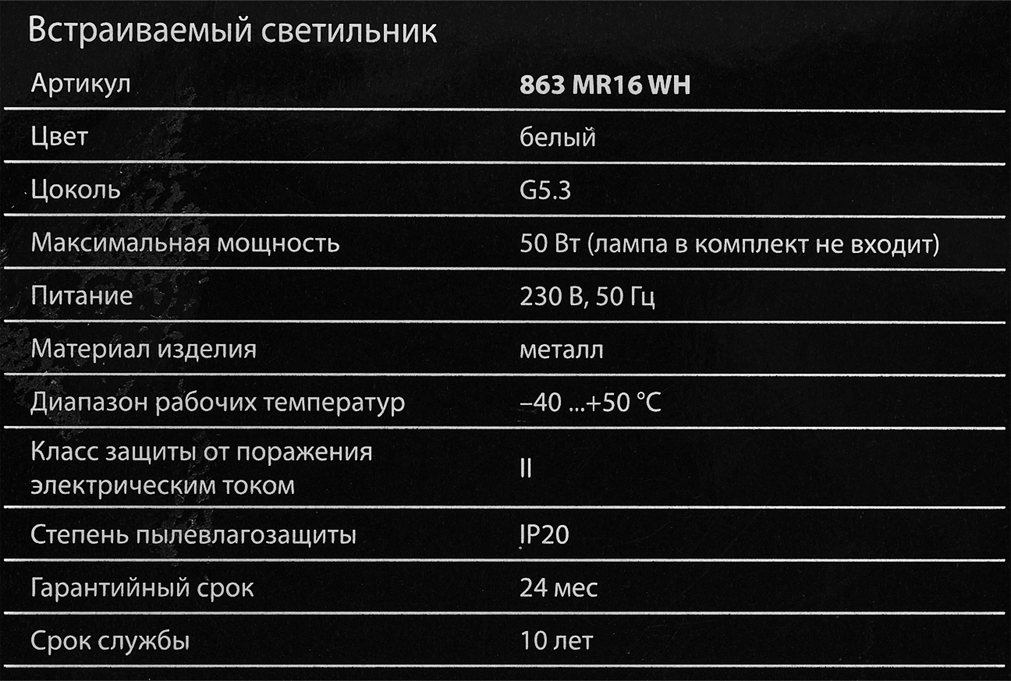Встраиваемый светильник Elektrostandard 863 MR16 WH / белый a030070