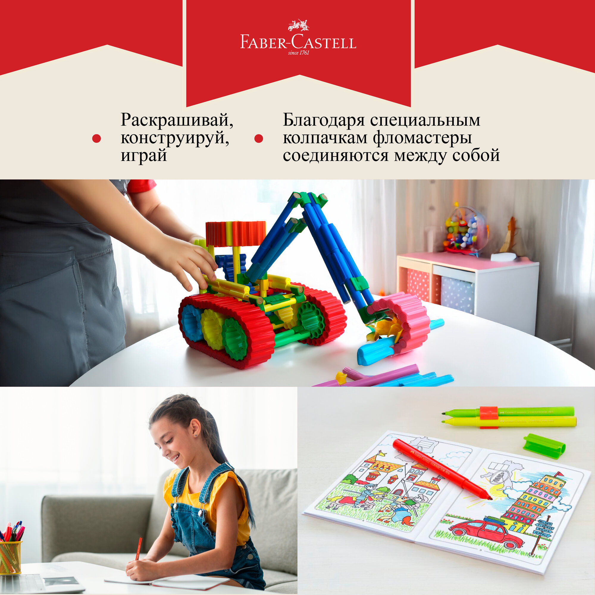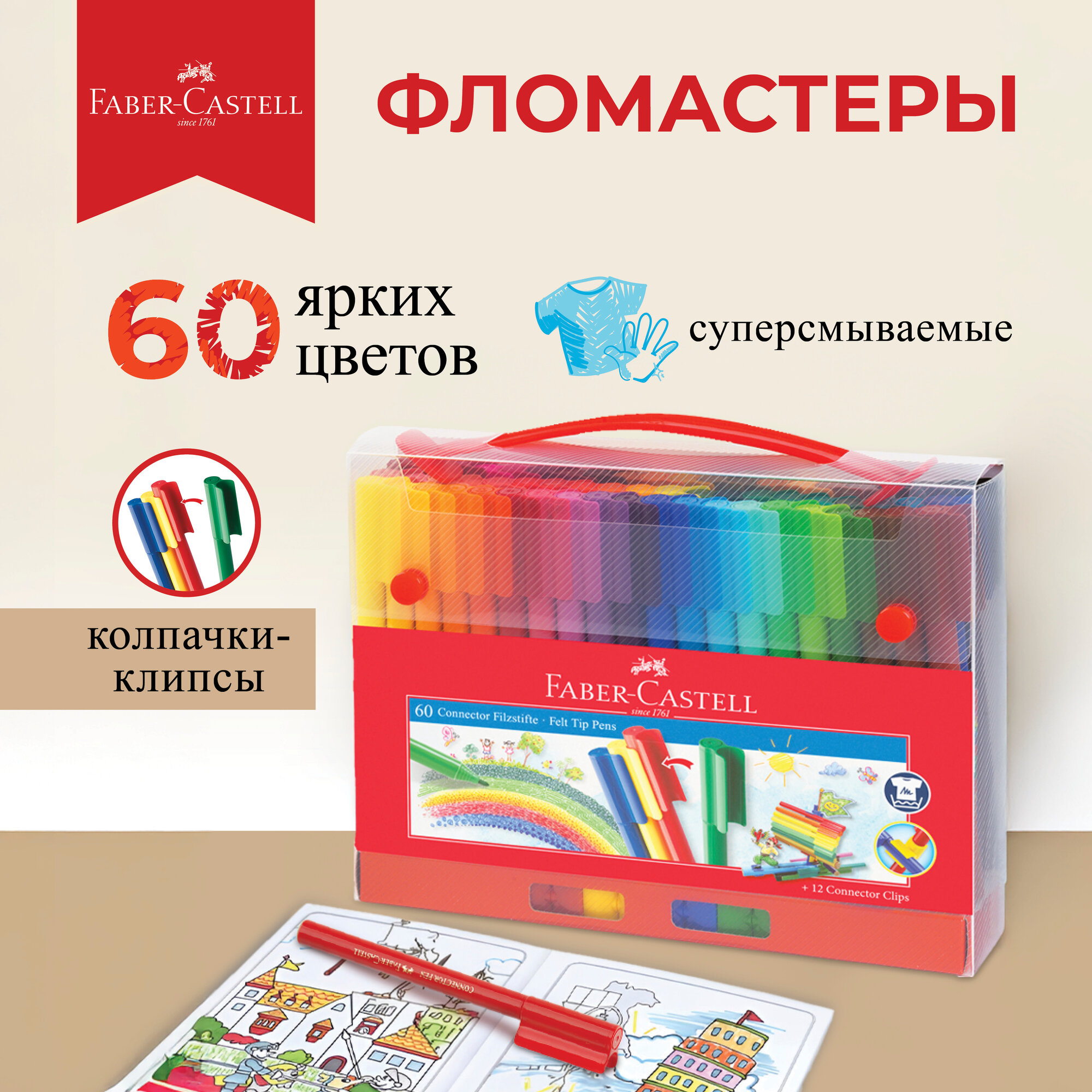 СохранитьФломастеры Faber-Castell "Connector", 60 цветов, смываемые, соединяемые колпачки интересное: