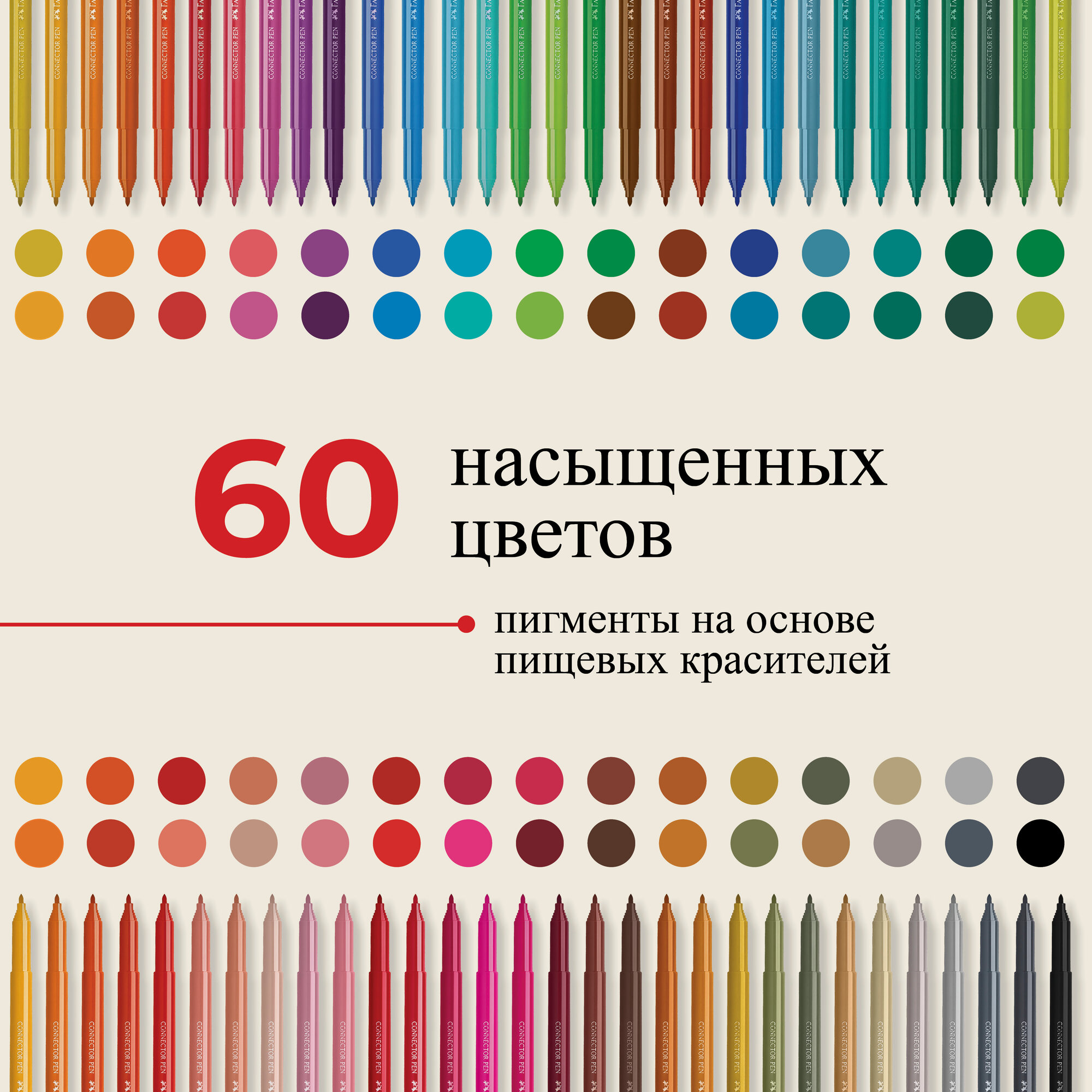 Фломастеры детские 60 цветов Connector, артикул 155560