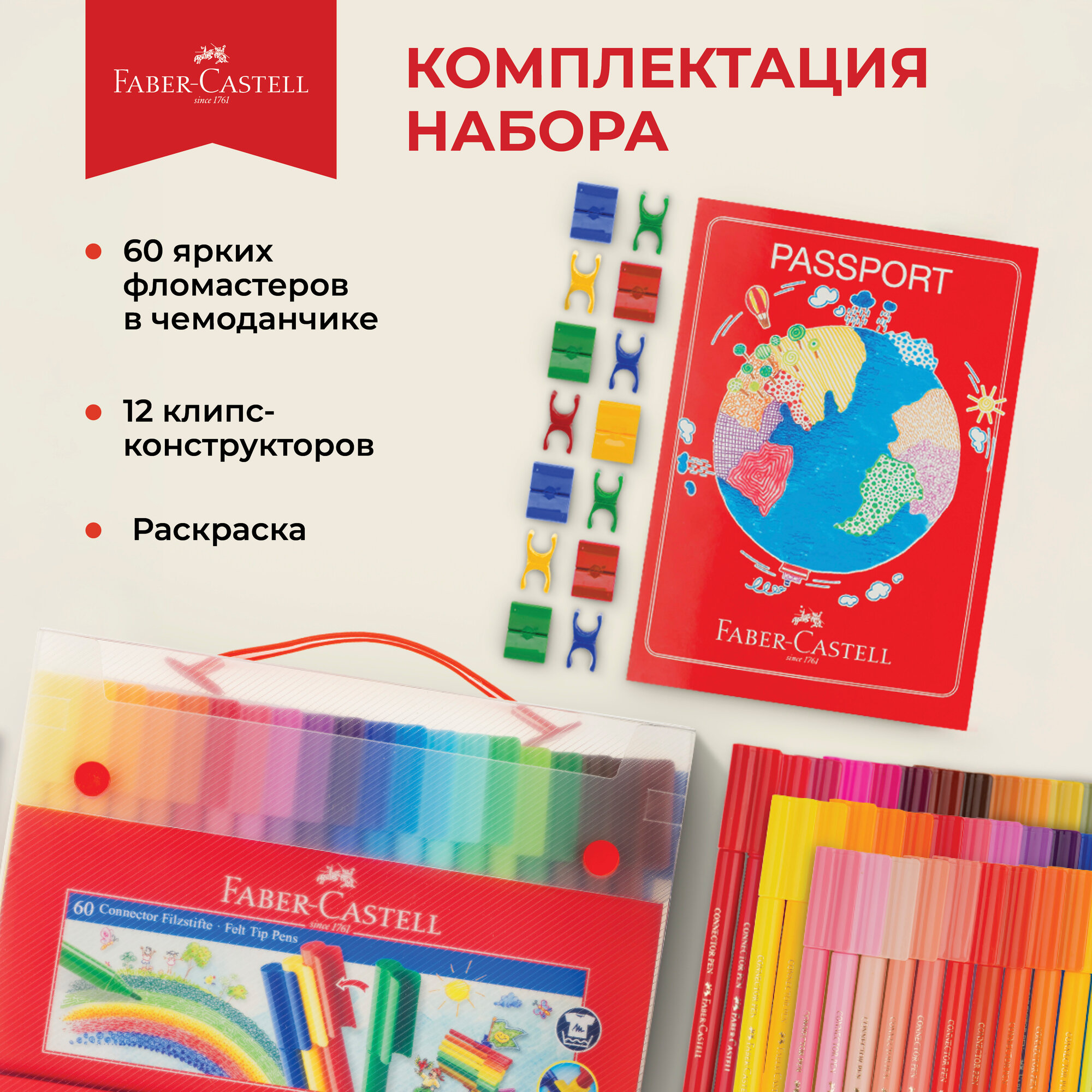 Купить Фломастеры Faber-Castell "Connector", 60 цветов, смываемые, соединяемые колпачки