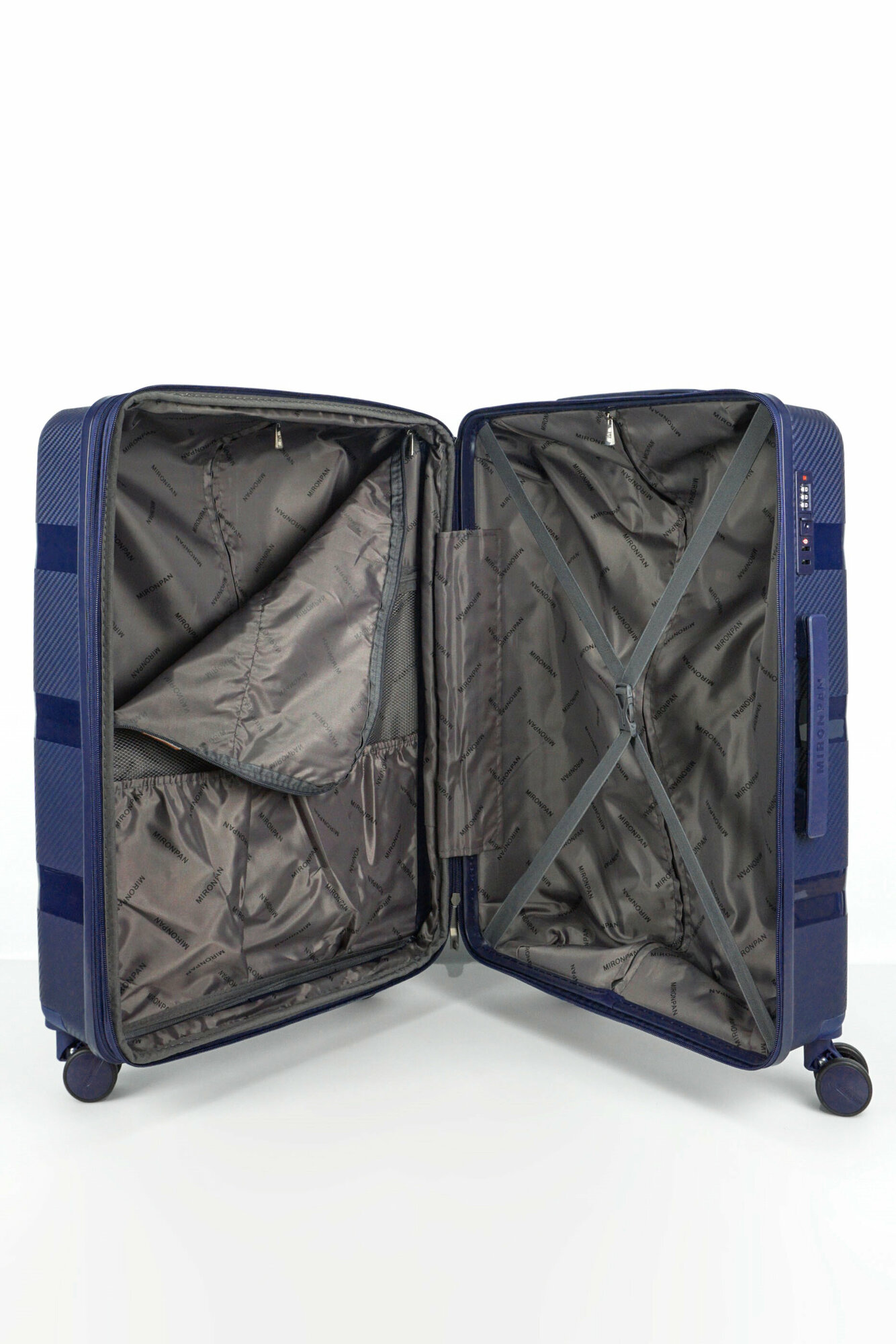Купить Чемодан Sweetbags (3 гориз. полосы) средний из полипропилена с расширением на 4-х колесах с TSA замком темно-синий M+