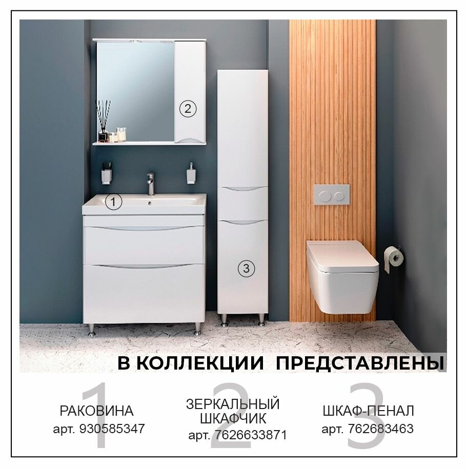 СохранитьТумба под раковину Runo афина 80, напольная, эмаль ,белый, под умывальник Moduo 80 интересное: