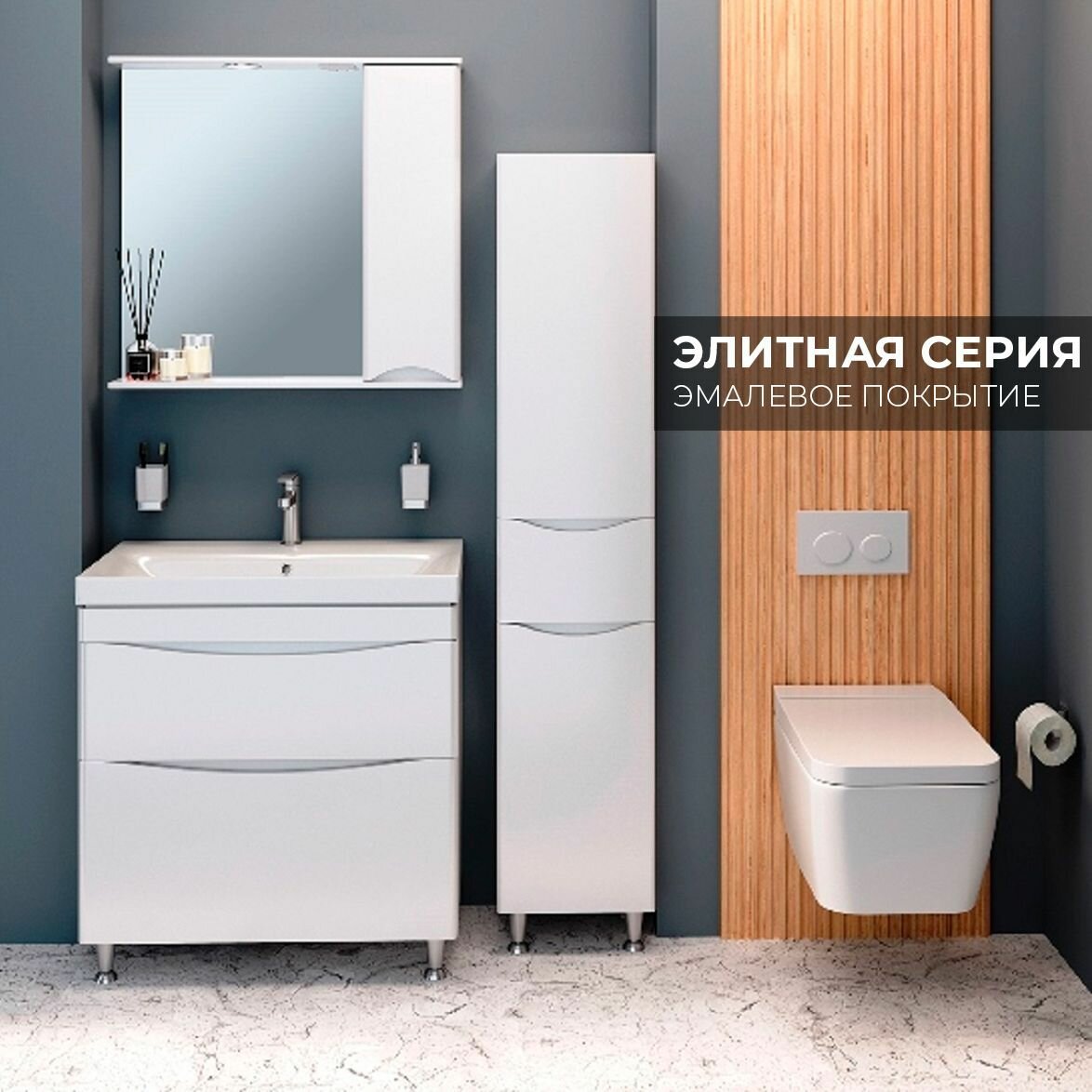 Тумба под раковину подвесная Афина 60, эмаль, цемент