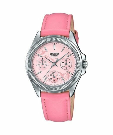 LTP-2089L-4A Casio наручные часы кварцевые WR50 (5 атм) женские серебряный, розовый отображение числа, отображение дня недели минеральное стекло