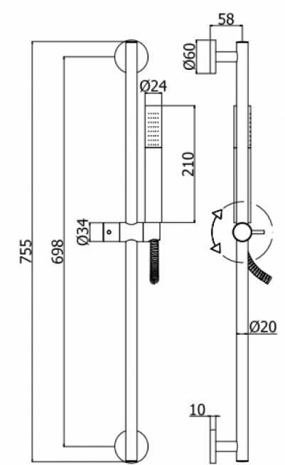 | Дополнительная информация | покрытие хром/серебро; высота стойки для душа: 755 мм |