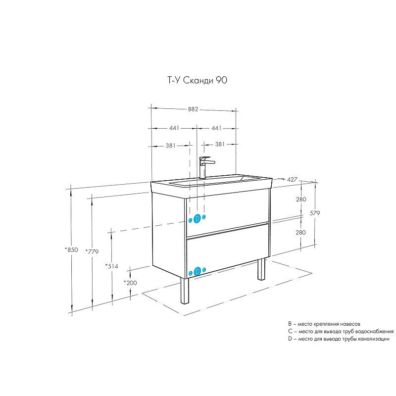 Тумба под раковину Aquaton Сканди 90 1A251901SDB20